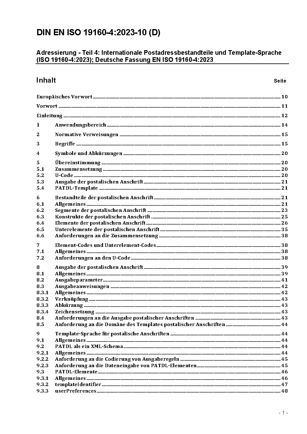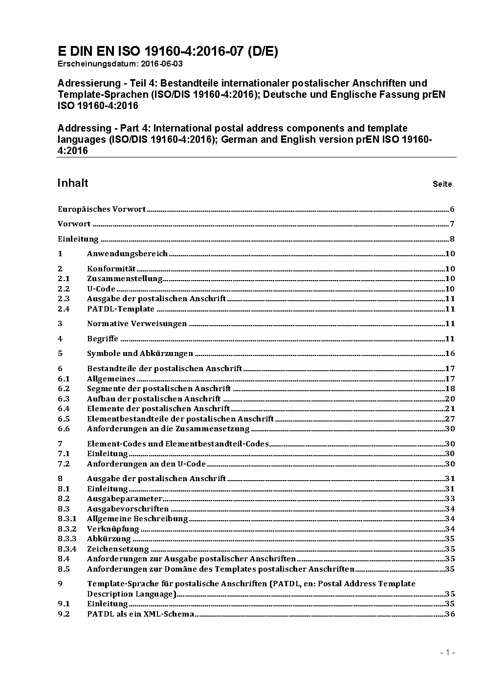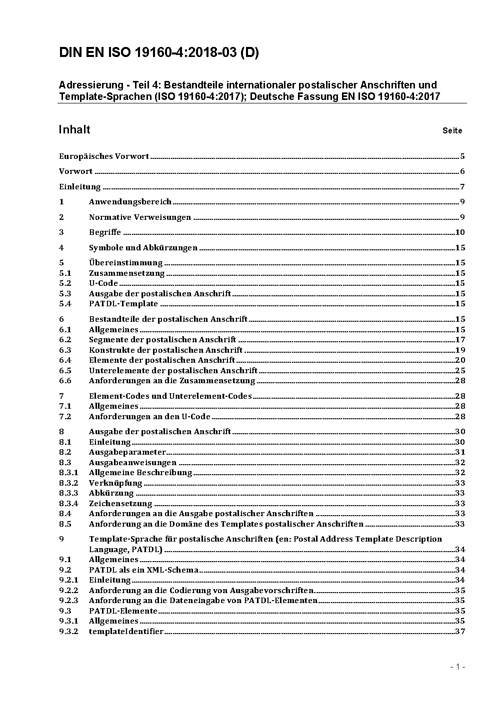 Addressing - Part 4: International postal address components and template language (ISO 19160-4:2017); German version EN ISO 19160-4:2017