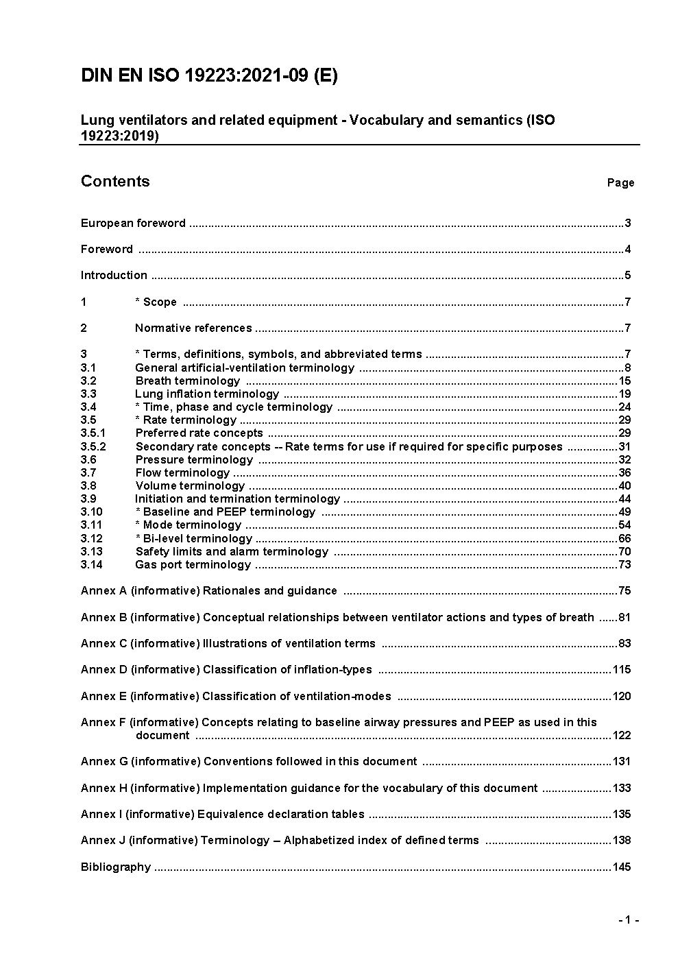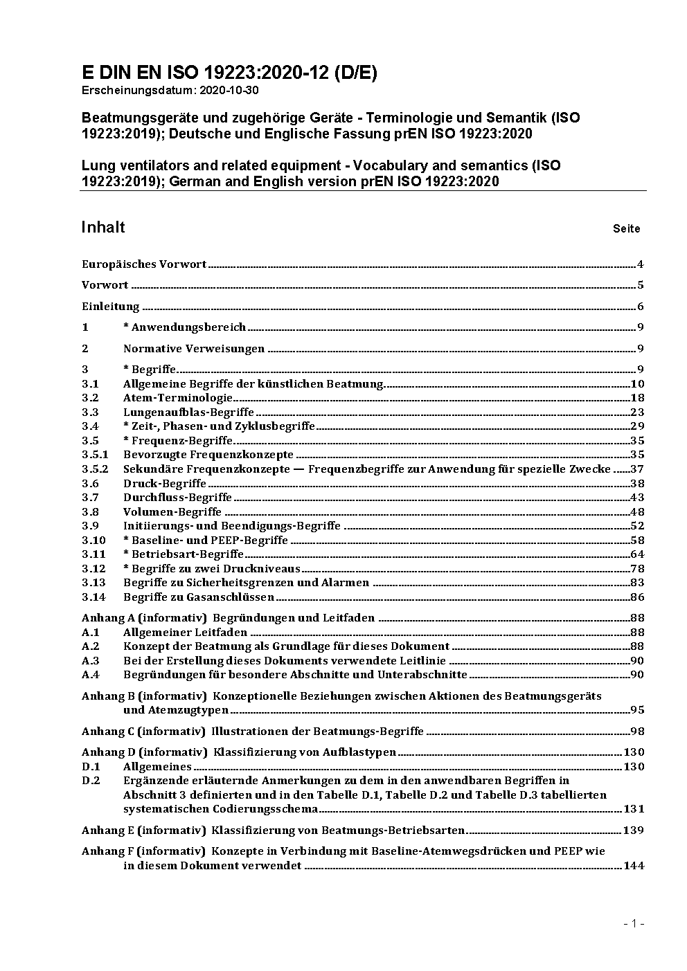 Beatmungsgeräte und zugehörige Geräte - Terminologie und Semantik (ISO 19223:2019); Deutsche und Englische Fassung prEN ISO 19223:2020