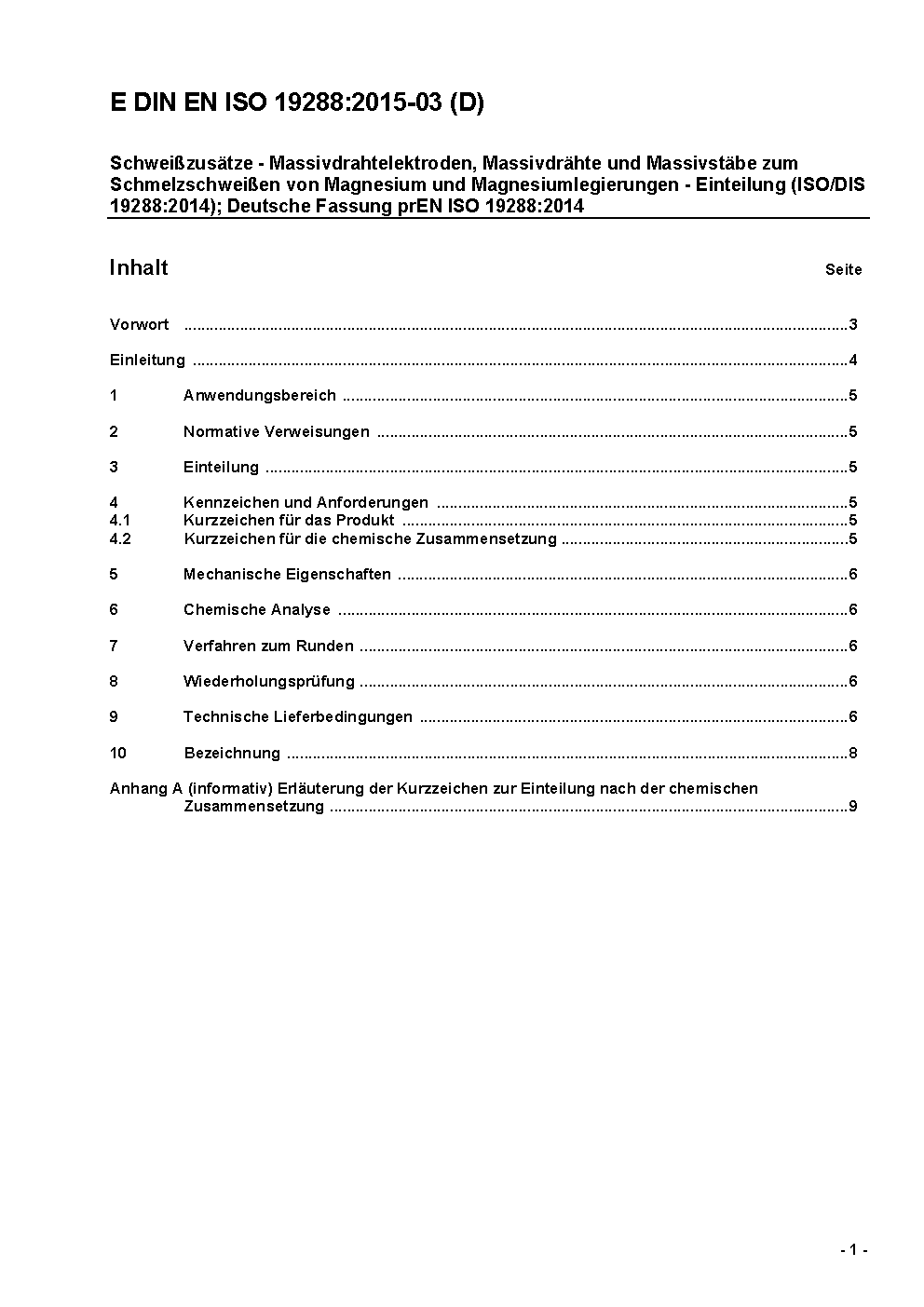 Schweißzusätze - Massivdrahtelektroden, Massivdrähte und Massivstäbe zum Schmelzschweißen von Magnesium und Magnesiumlegierungen - Einteilung (ISO/DIS 19288:2014); Deutsche Fassung prEN ISO 19288:2014