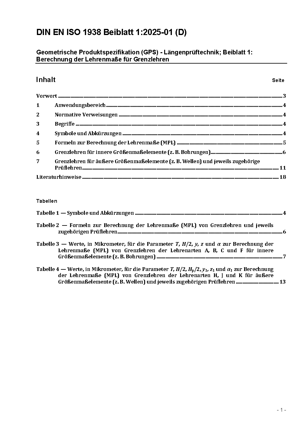 Geometrische Produktspezifikation (GPS) - Längenprüftechnik; Beiblatt 1: Berechnung der Lehrenmaße für Grenzlehren