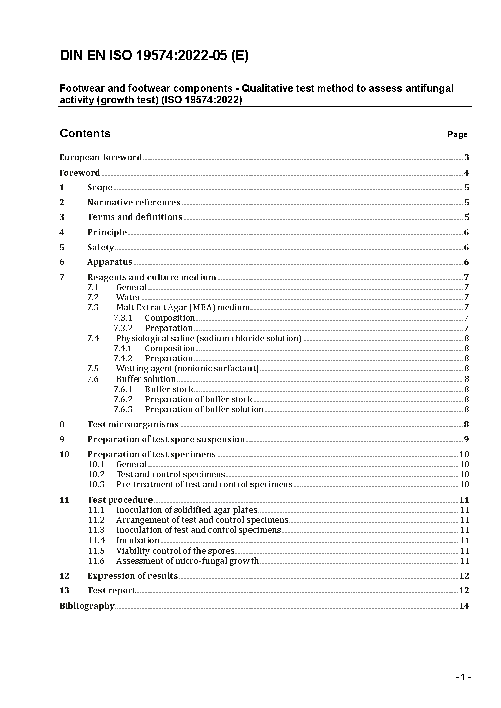 Footwear and footwear components - Qualitative test method to assess antifungal activity (growth test) (ISO 19574:2022); German version EN ISO 19574:2022