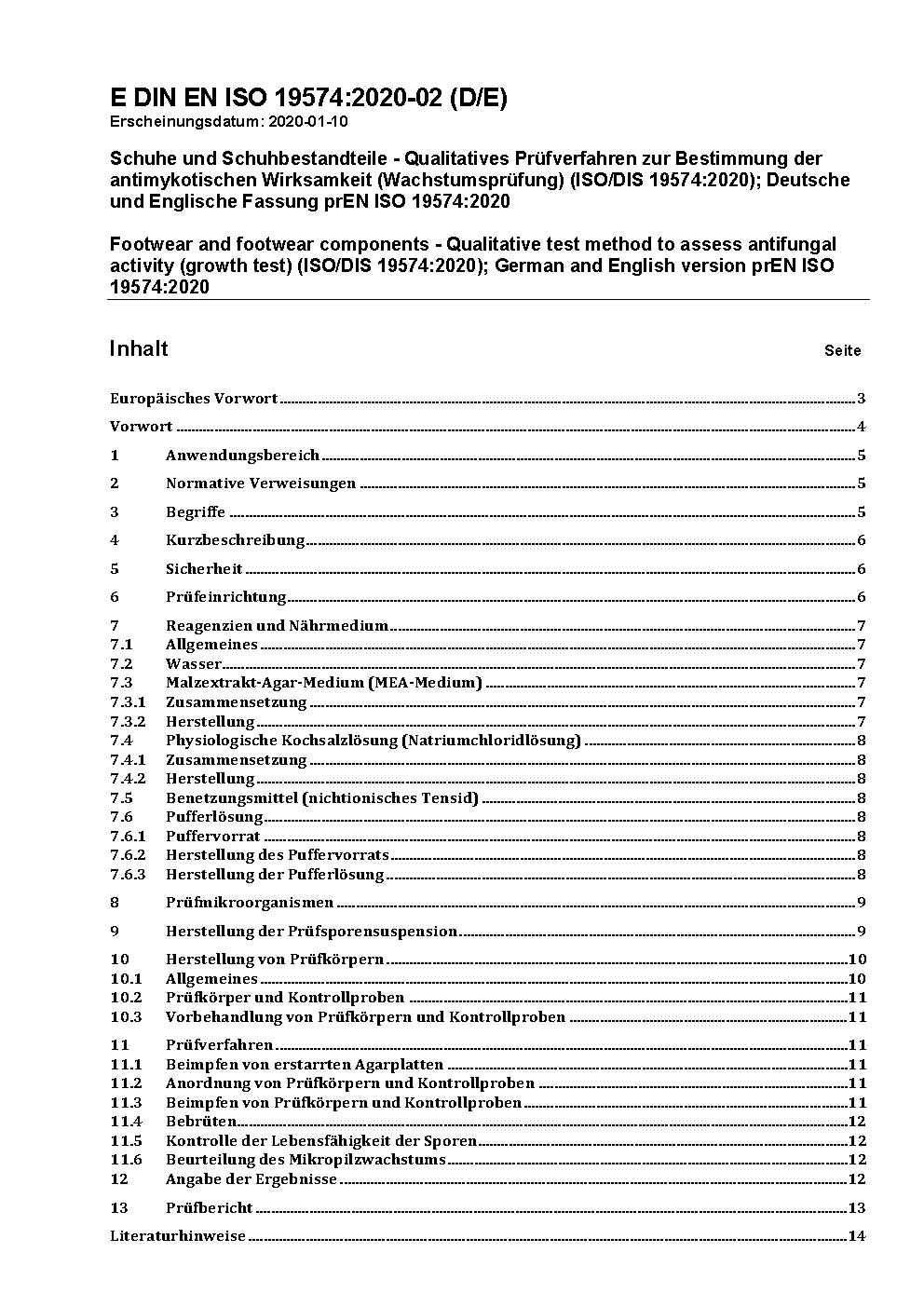Schuhe und Schuhbestandteile - Qualitatives Prüfverfahren zur Bestimmung der antimykotischen Wirksamkeit (Bewuchstest) (ISO 19574:2022); Deutsche Fassung EN ISO 19574:2022