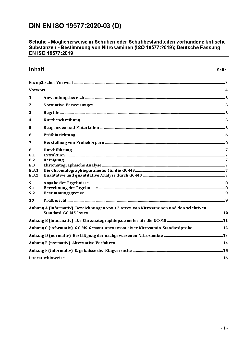 Schuhe - Möglicherweise in Schuhen oder Schuhbestandteilen vorhandene kritische Substanzen - Bestimmung von Nitrosaminen (ISO 19577:2019); Deutsche Fassung EN ISO 19577:2019