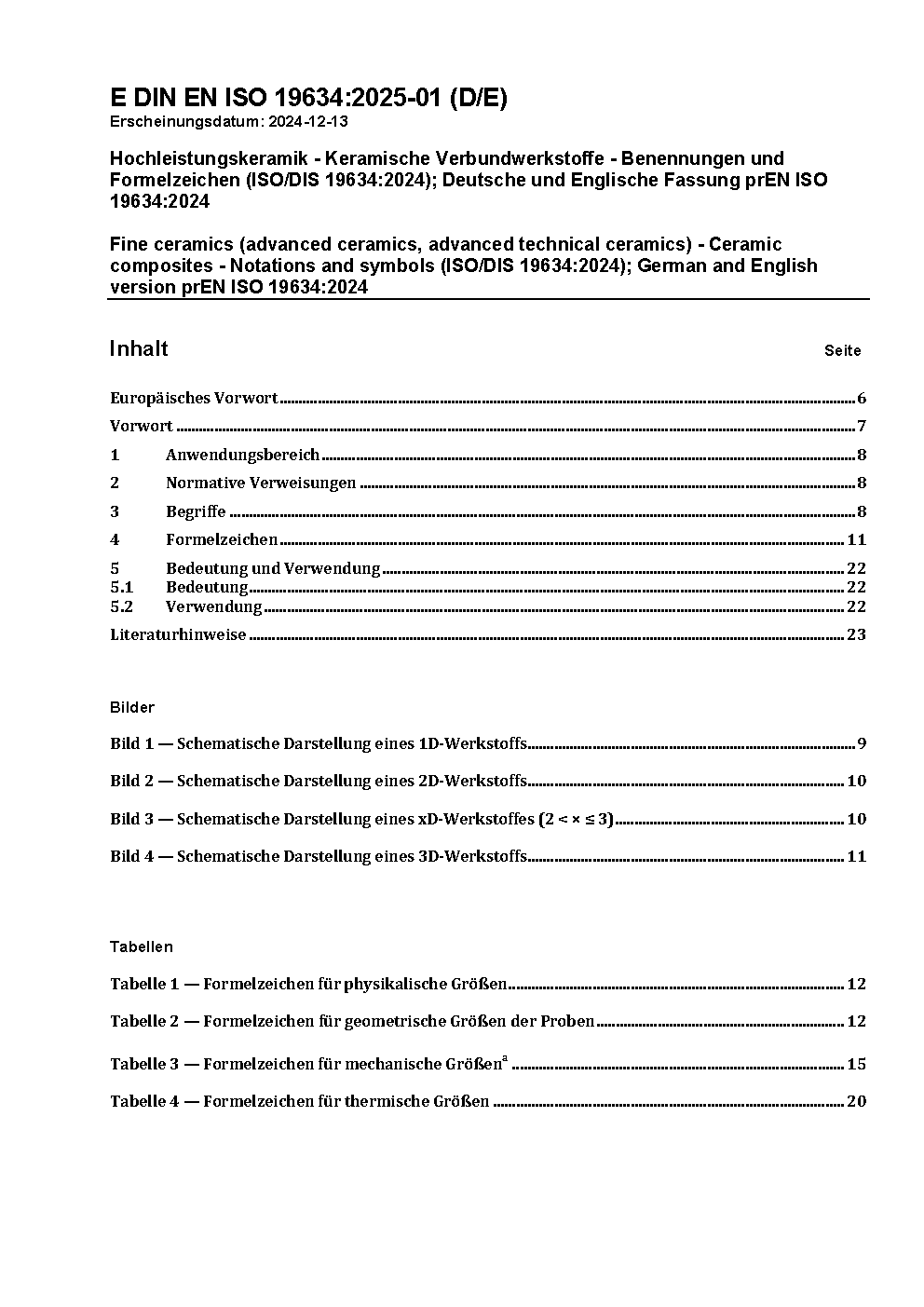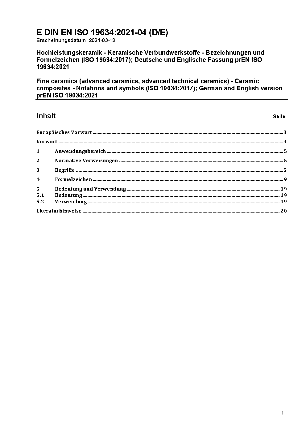 Fine ceramics (advanced ceramics, advanced technical ceramics) - Ceramic composites - Notations and symbols (ISO 19634:2017); German version EN ISO 19634:2021