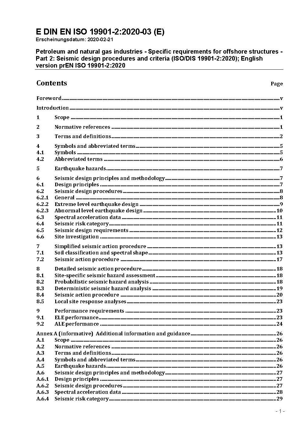 Petroleum and natural gas industries - Specific requirements for offshore structures - Part 2: Seismic design procedures and criteria (ISO 19901-2:2017); English version EN ISO 19901-2:2017