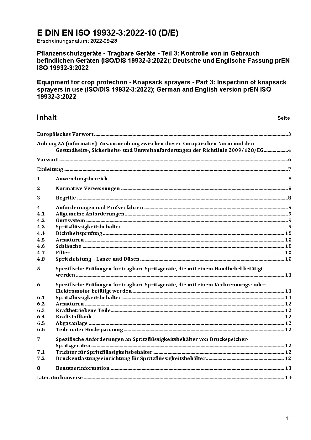 Equipment for crop protection - Knapsack sprayers - Part 3: Inspection of knapsack sprayers in use (ISO/DIS 19932-3:2017); German and English version prEN ISO 19932-3:2017