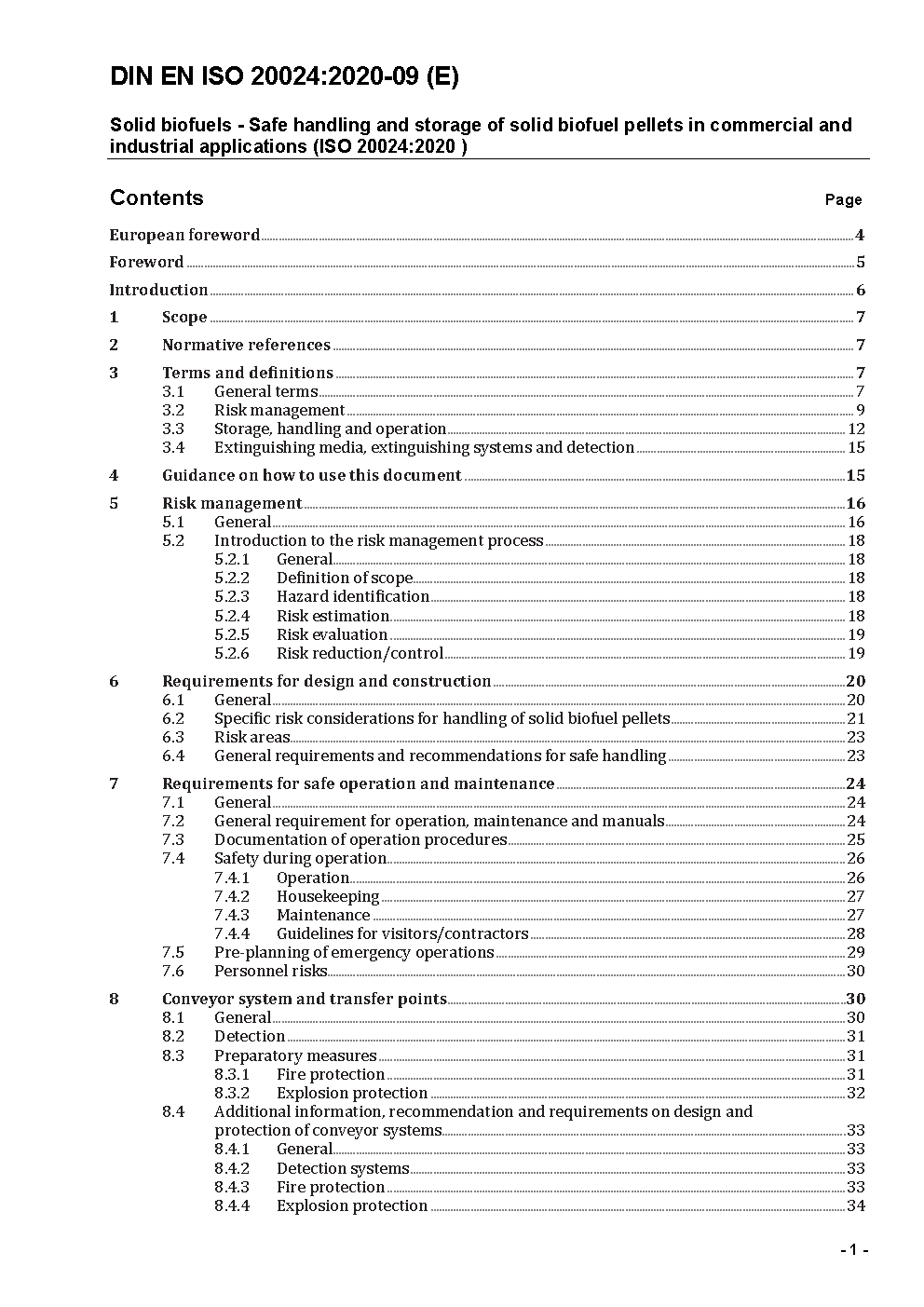 Solid biofuels - Safe handling and storage of solid biofuel pellets in commercial and industrial applications (ISO/DIS 20024:2019); German and English version prEN ISO 20024:2019