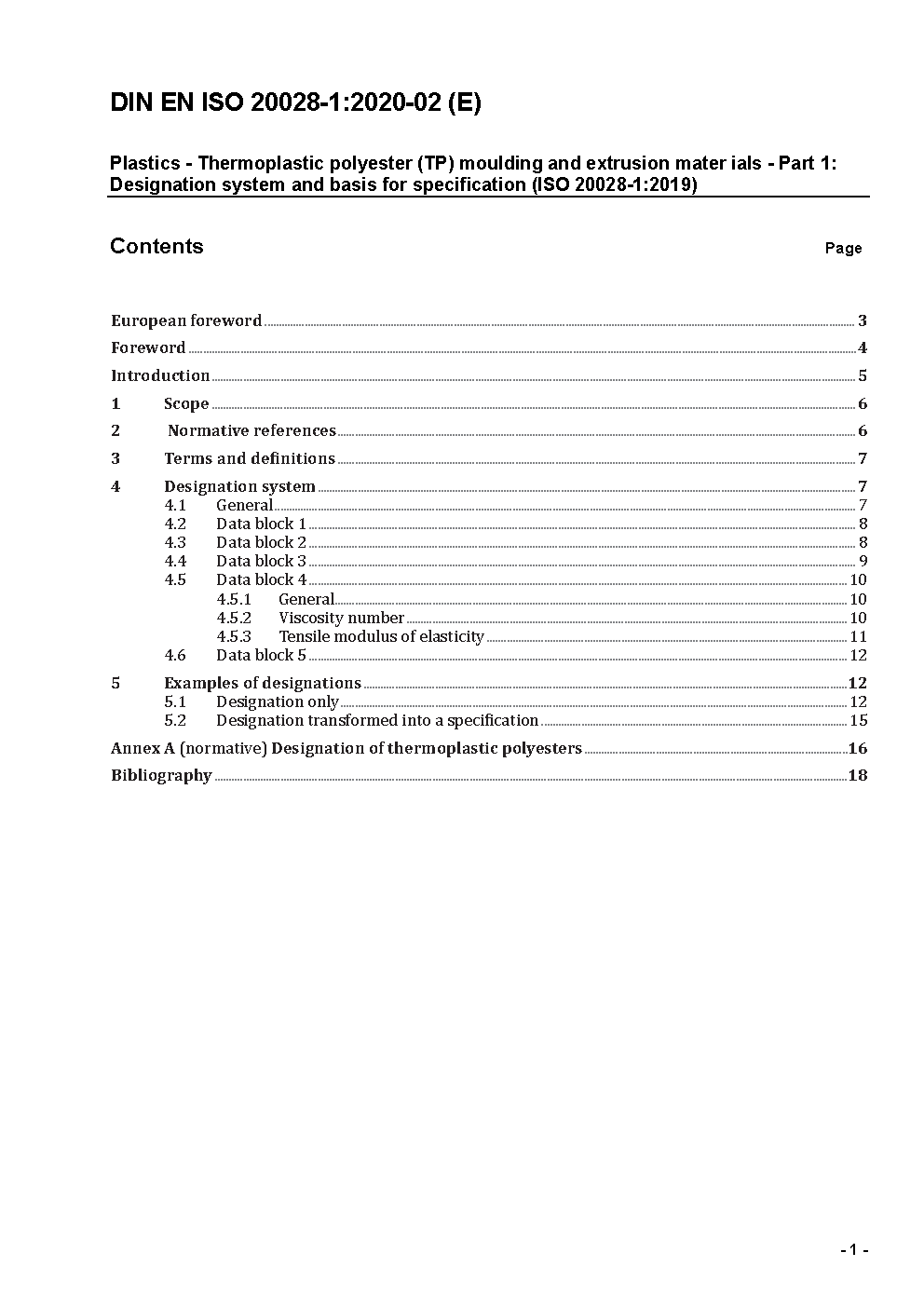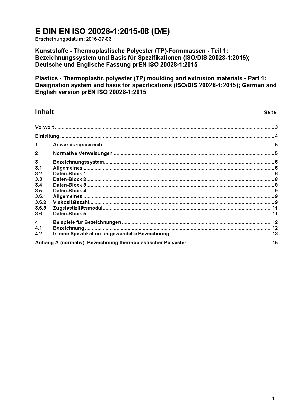 Plastics - Thermoplastic polyester (TP) moulding and extrusion materials - Part 1: Designation system and basis for specifications (ISO 20028-1:2017); German version EN ISO 20028-1:2017