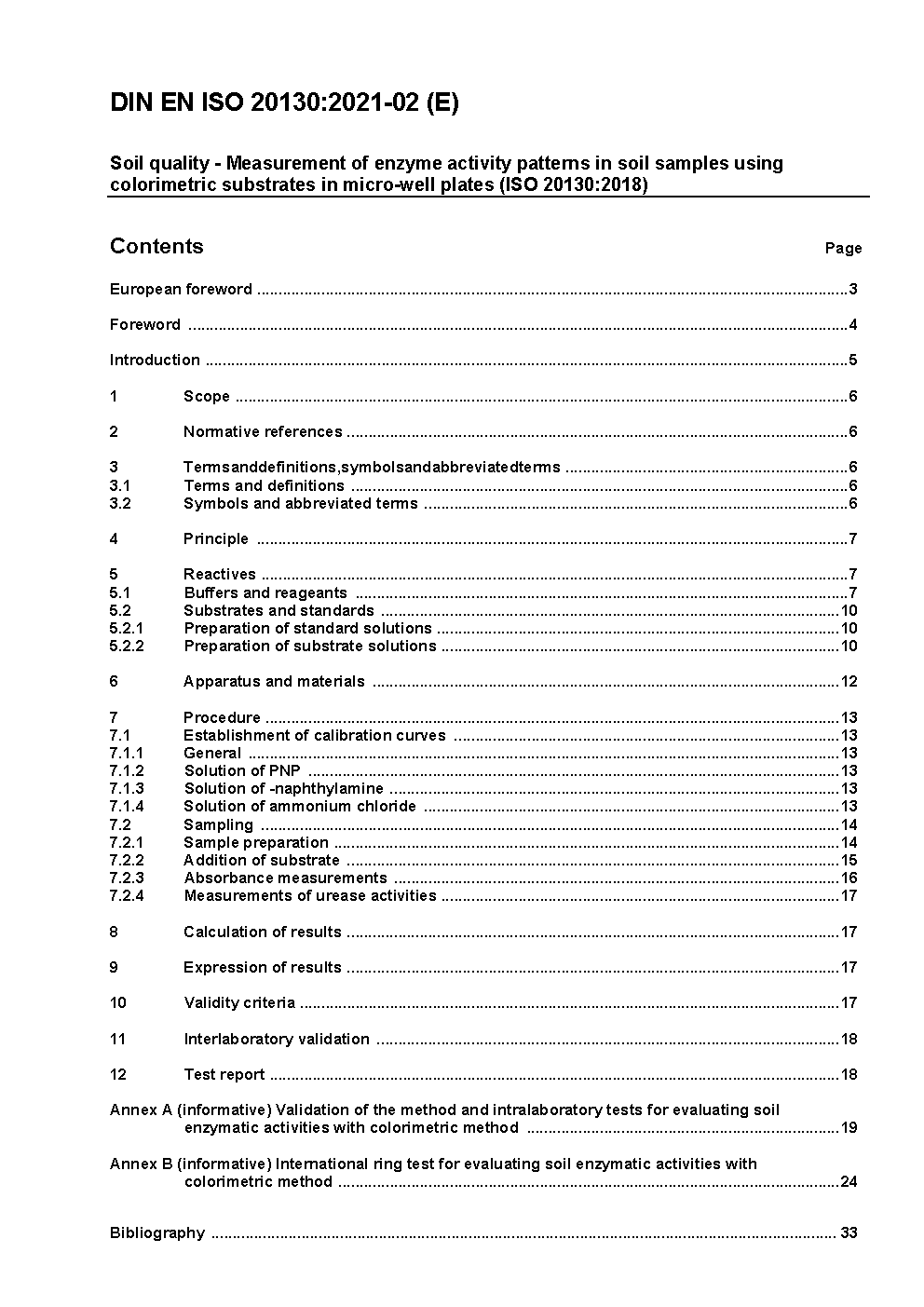 Soil quality - Measurement of enzyme activity patterns in soil samples using colorimetric substrates in micro-well plates (ISO 20130:2018); German version EN ISO 20130:2020