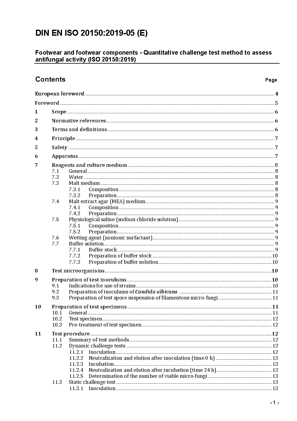 Footwear and footwear components - Quantitative challenge test method to assess antifungal activity (ISO/DIS 20150:2017); German and English version prEN ISO 20150:2017