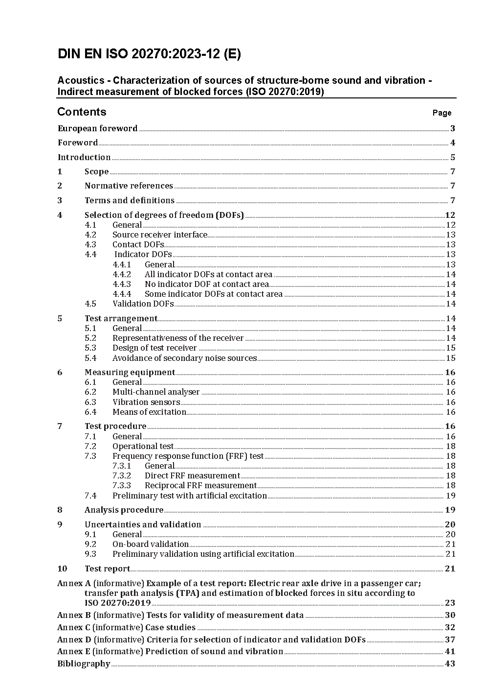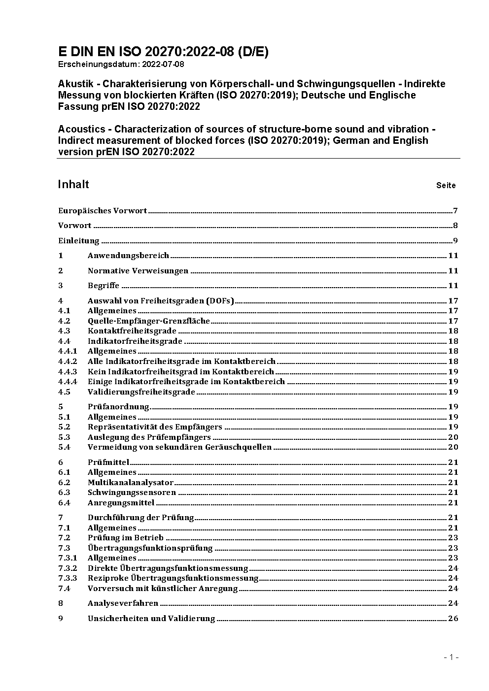 Acoustics - Characterization of sources of structure-borne sound and vibration - Indirect measurement of blocked forces (ISO 20270:2019); German and English version prEN ISO 20270:2022