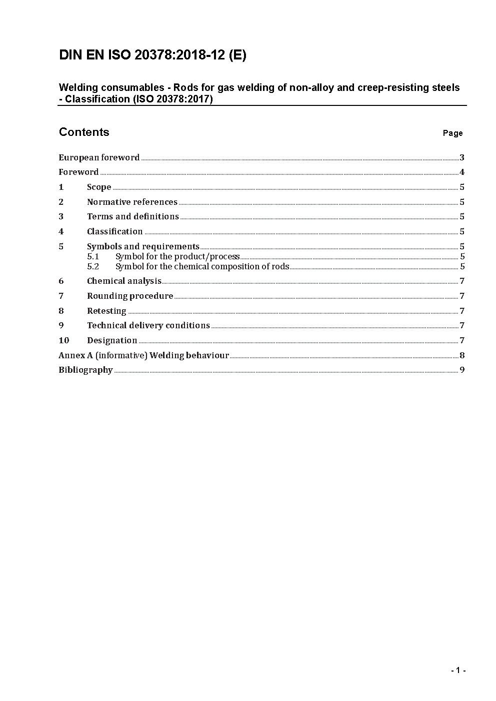 Welding consumables - Rods for gas welding of non-alloy and creep-resisting steels - Classification (ISO 20378:2017); German and English version prEN ISO 20378:2017