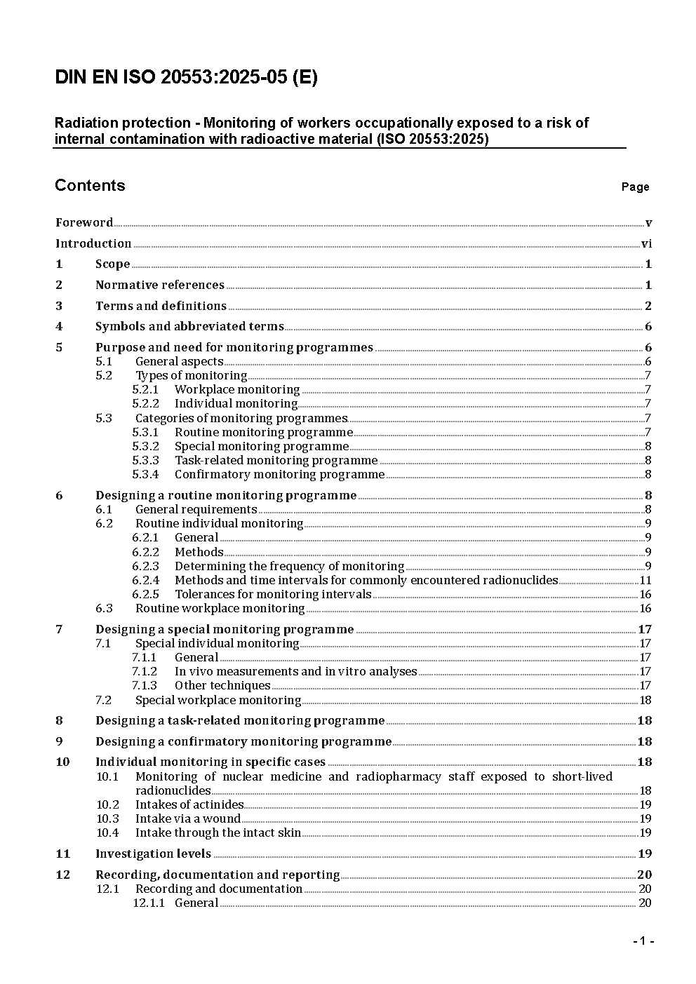 Strahlenschutz - Überwachung von beruflich strahlenexponierten Personen, bei denen ein Risiko der Kontamination mit radioaktiven Stoffen besteht (ISO 20553:2006); Deutsche und Englische Fassung EN ISO 20553:2017