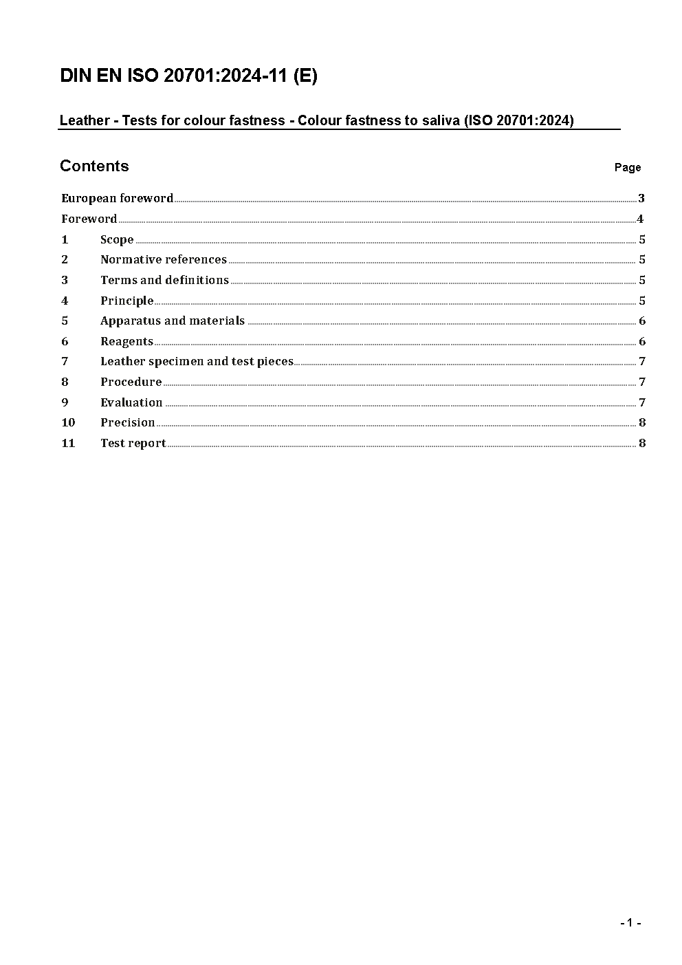 Leather - Tests for colour fastness - Colour fastness to saliva (ISO/DIS 20701:2023); German and English version prEN ISO 20701:2023