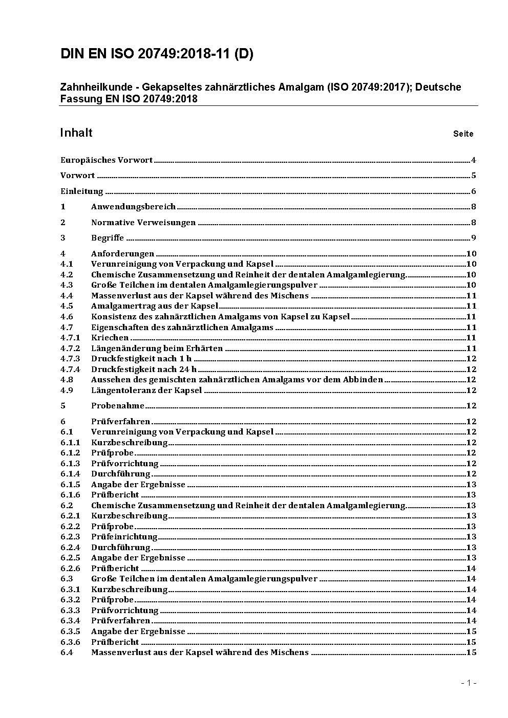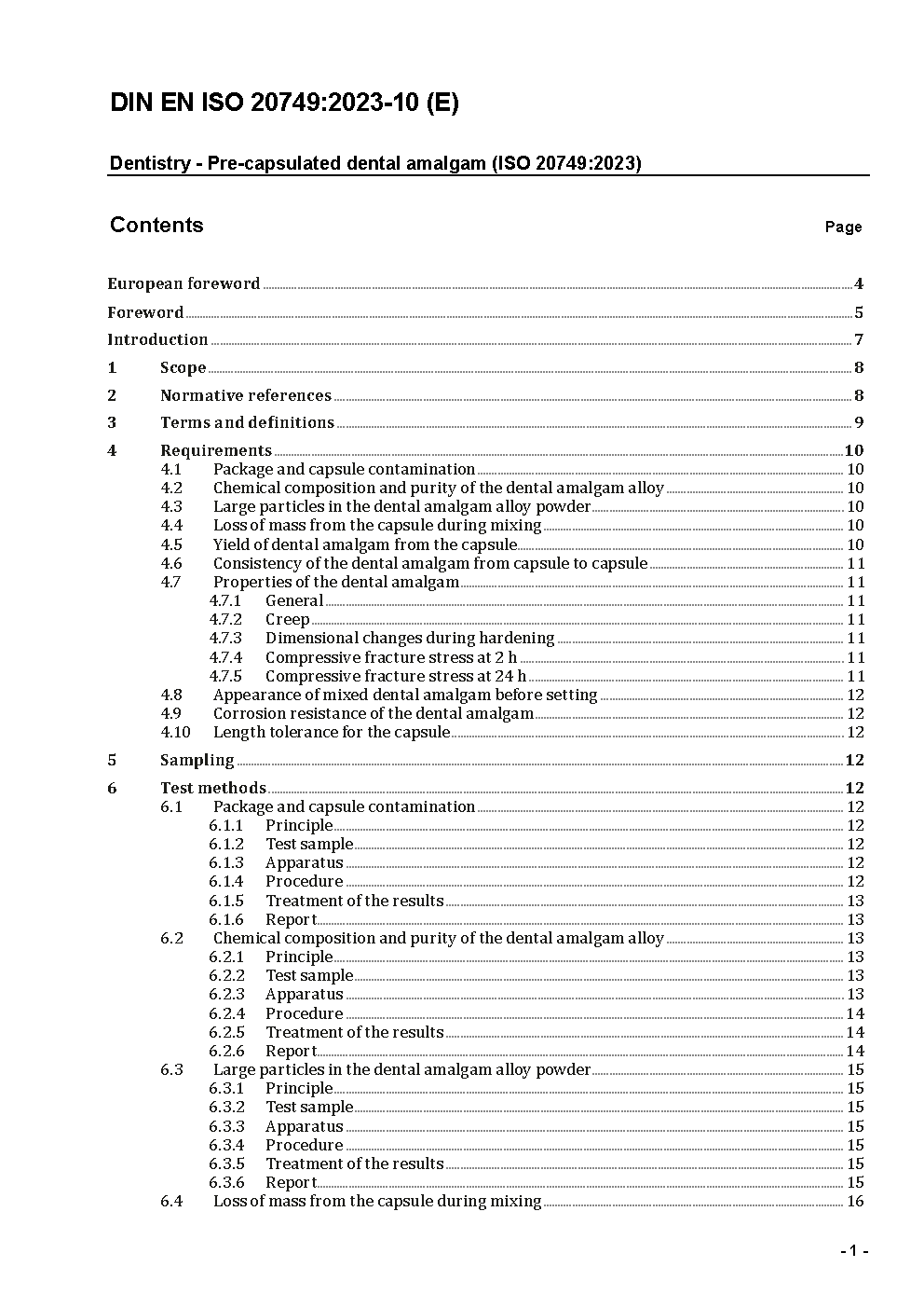 Dentistry - Pre-capsulated dental amalgam (ISO 20749:2023); German version EN ISO 20749:2023