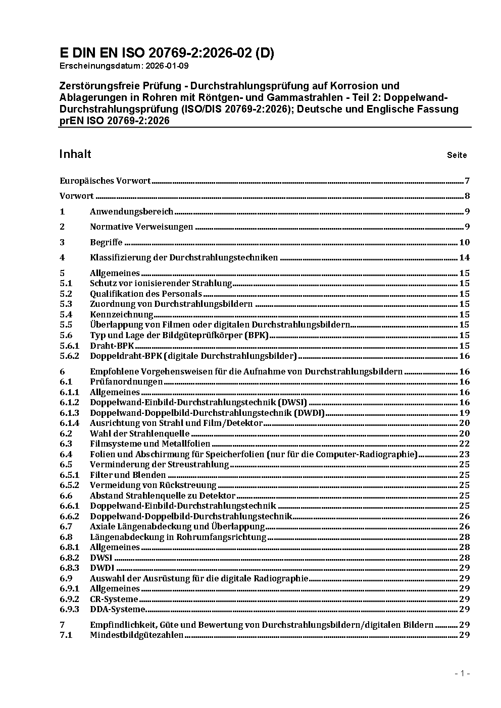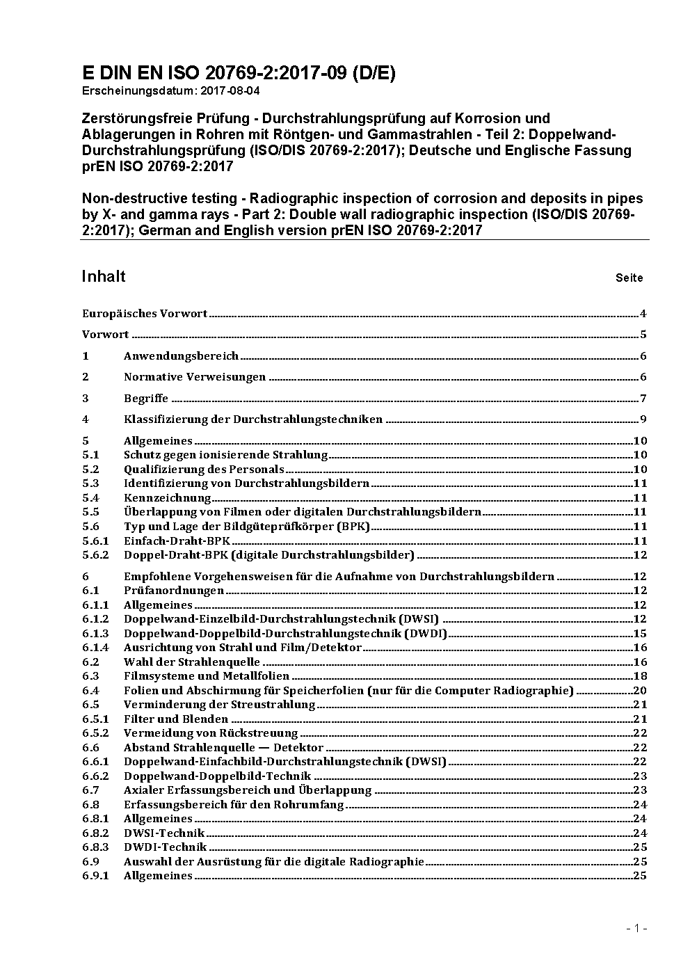 Zerstörungsfreie Prüfung - Durchstrahlungsprüfung auf Korrosion und Ablagerungen in Rohren mit Röntgen- und Gammastrahlen - Teil 2: Doppelwand-Durchstrahlungsprüfung (ISO 20769-2:2018); Deutsche Fassung EN ISO 20769-2:2018