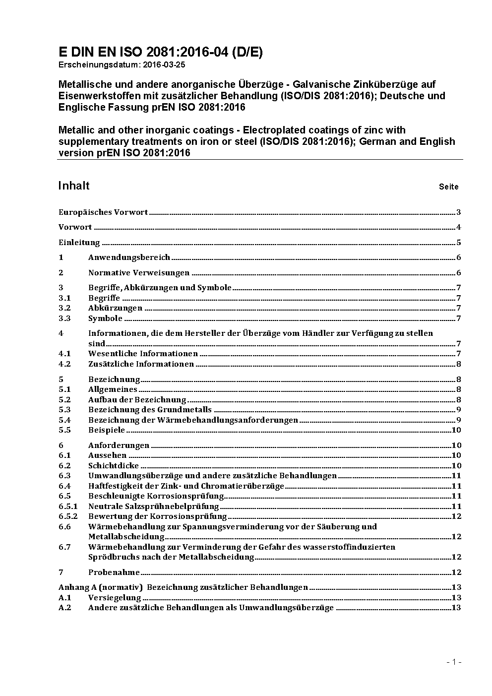 Prévu pour remplacer DIN EN ISO 2081 (2009-05).