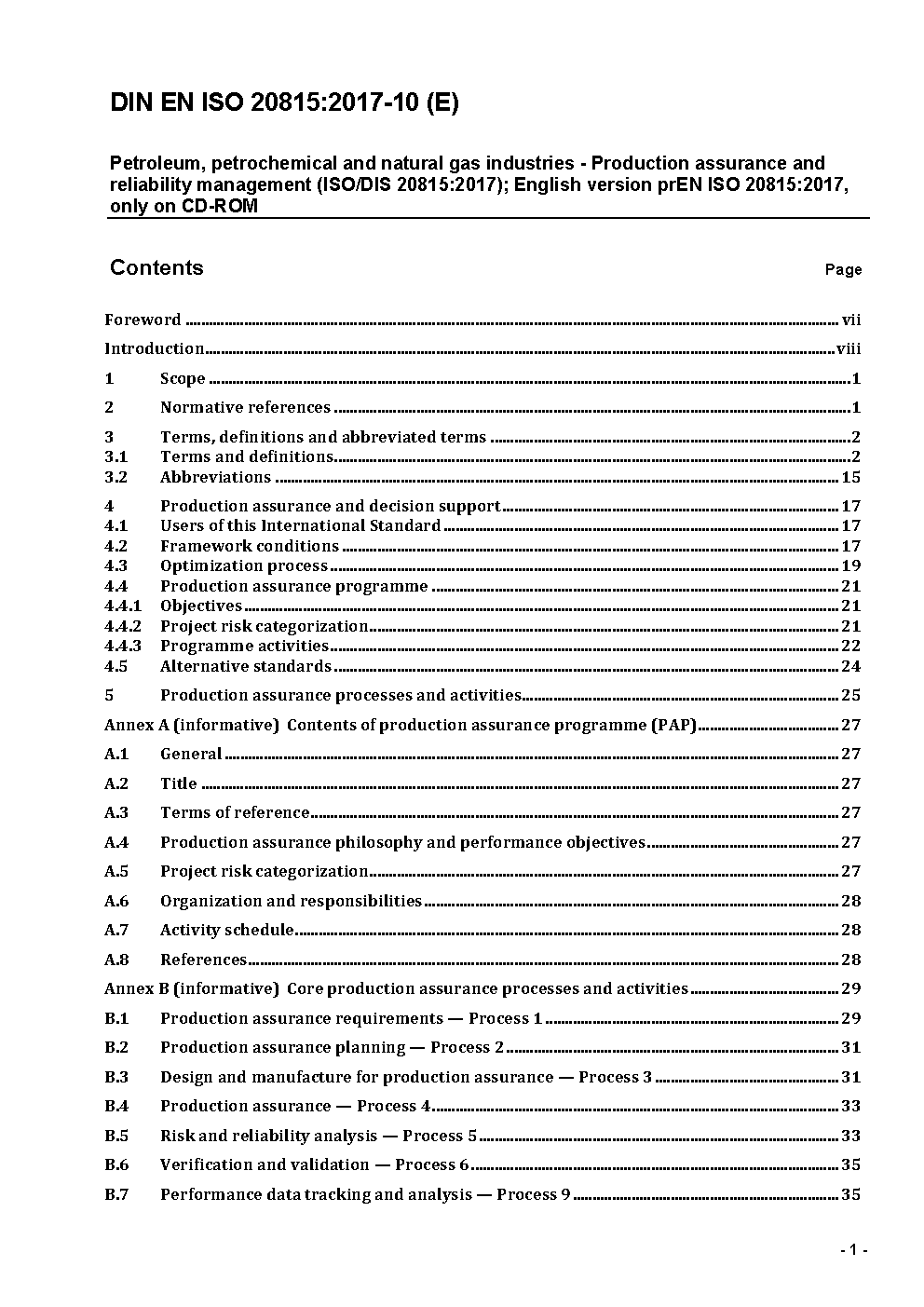 Petroleum, petrochemical and natural gas industries - Production assurance and reliability management (ISO/DIS 20815:2017); English version prEN ISO 20815:2017, only on CD-ROM.