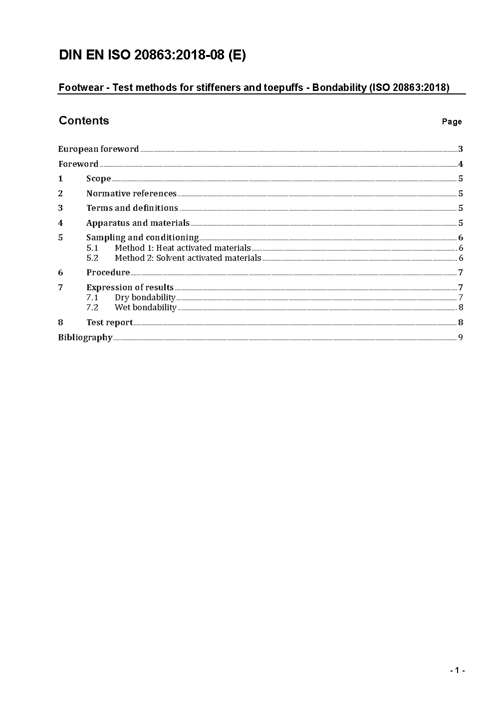 Footwear - Test methods for stiffeners and toepuffs - Bondability (ISO/DIS 20863:2015); German and English version prEN ISO 20863:2015
