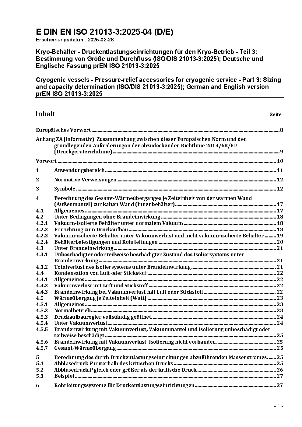 Kryo-Behälter - Druckentlastungseinrichtungen für den Kryo-Betrieb - Teil 3: Bestimmung von Größe und Durchfluss (ISO 21013-3:2016); Deutsche Fassung EN ISO 21013-3:2016