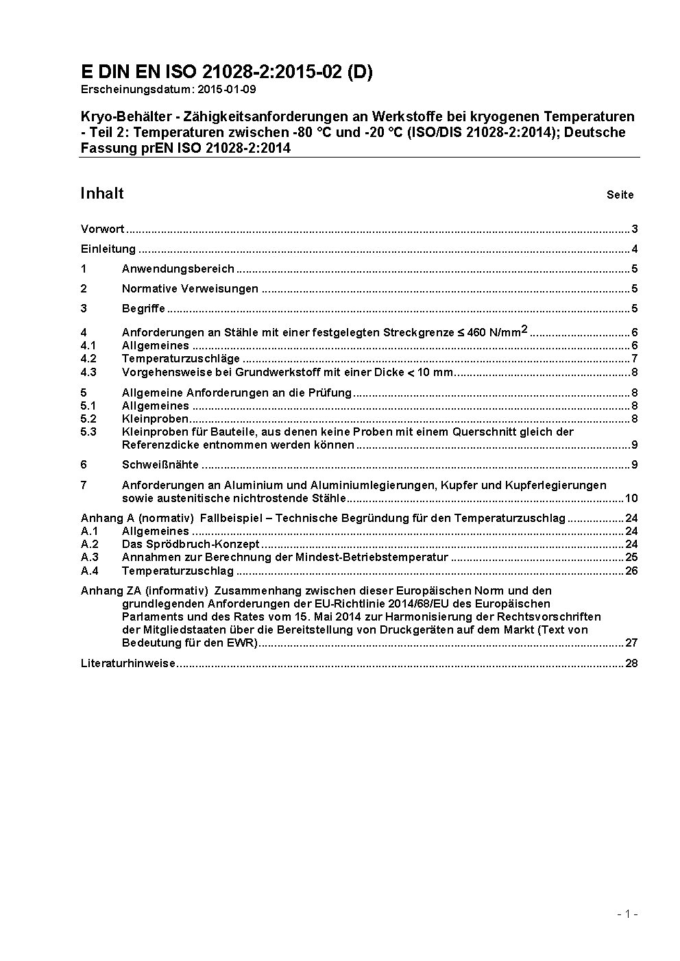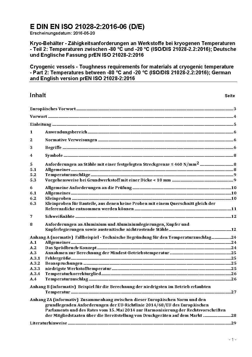 Kryo-Behälter - Zähigkeitsanforderungen an Werkstoffe bei kryogenen Temperaturen - Teil 2: Temperaturen zwischen -80 °C und -20 °C (ISO/DIS 21028-2.2:2016); Deutsche und Englische Fassung prEN ISO 21028-2:2016