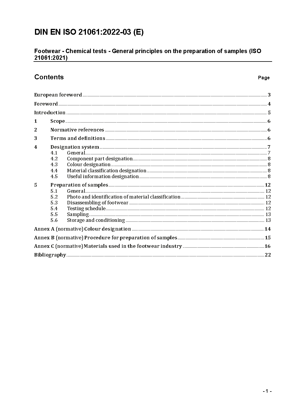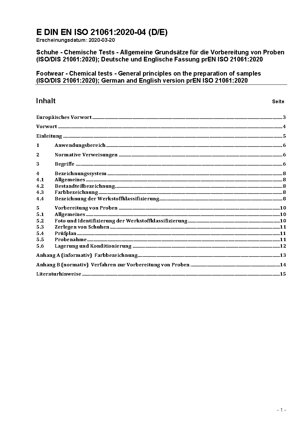 Footwear - Chemical tests - General principles on the preparation of samples (ISO 21061:2021); German version EN ISO 21061:2021