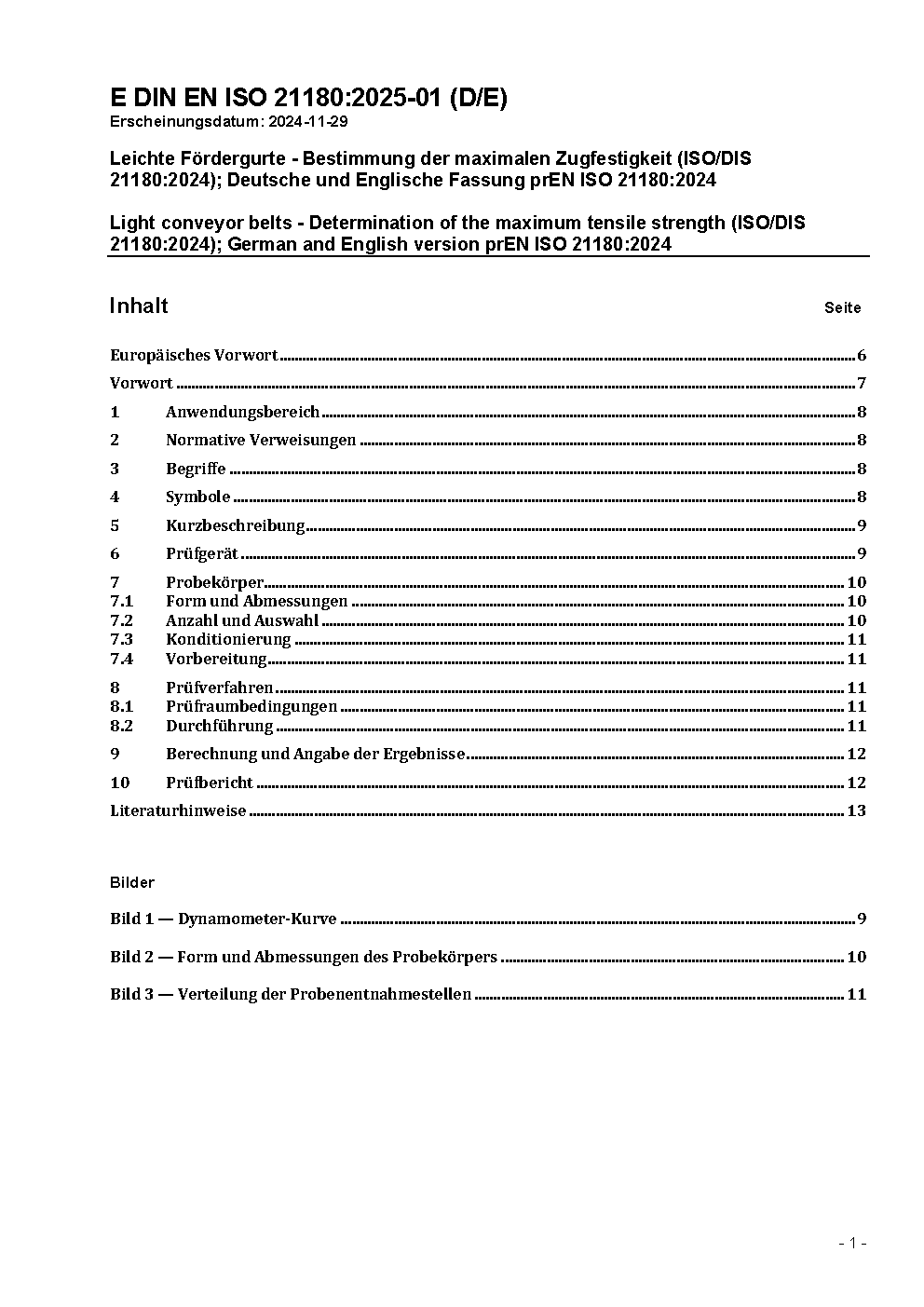 Leichte Fördergurte - Bestimmung der maximalen Zugfestigkeit (ISO 21180:2013); Deutsche Fassung EN ISO 21180:2013