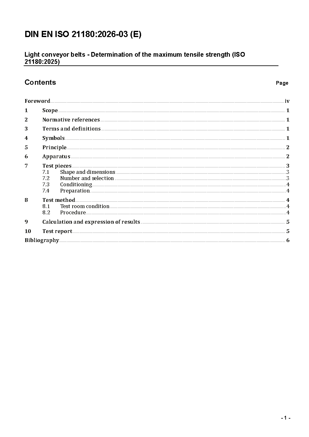 Light conveyor belts - Determination of the maximum tensile strength (ISO 21180:2013); German version EN ISO 21180:2013