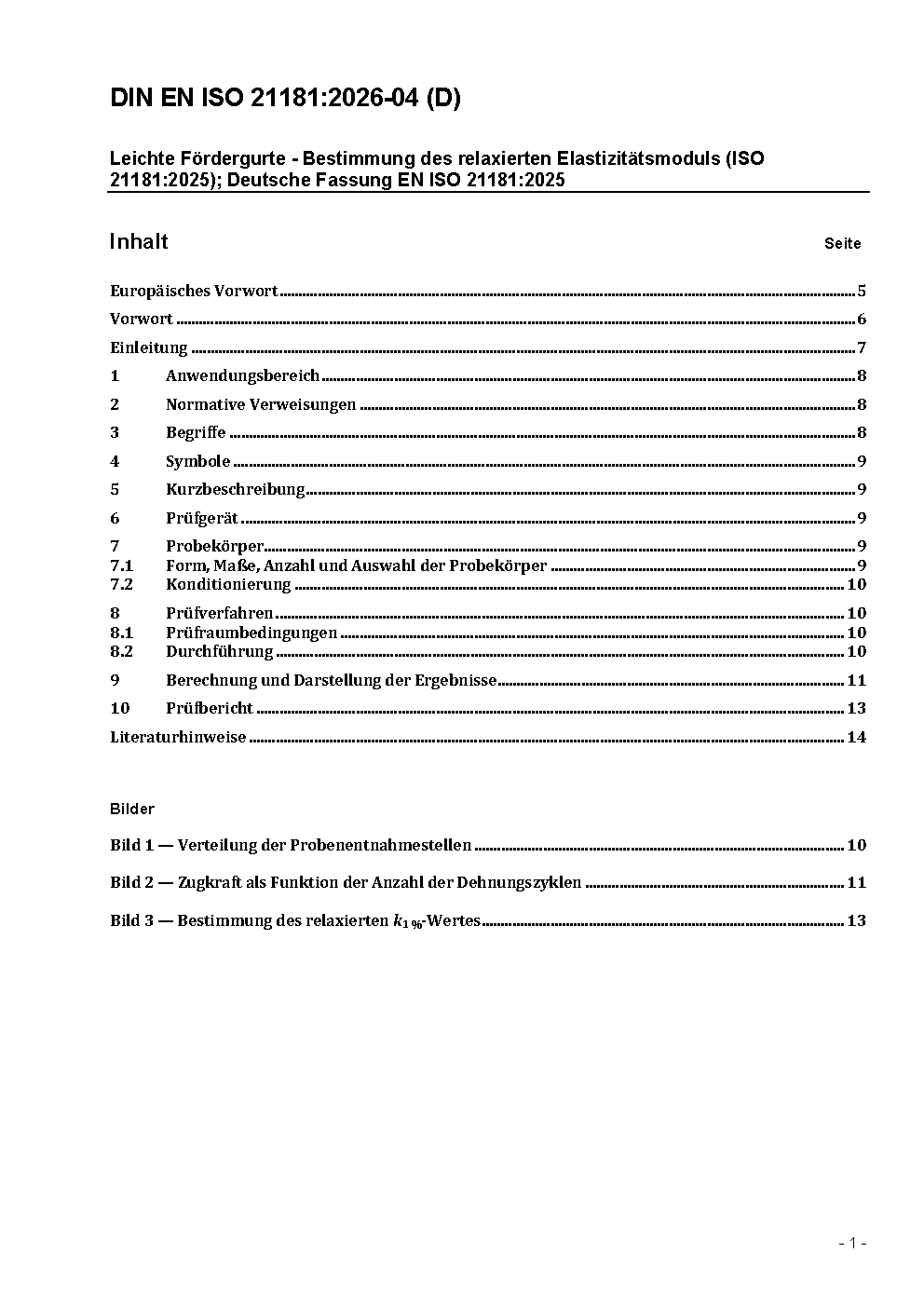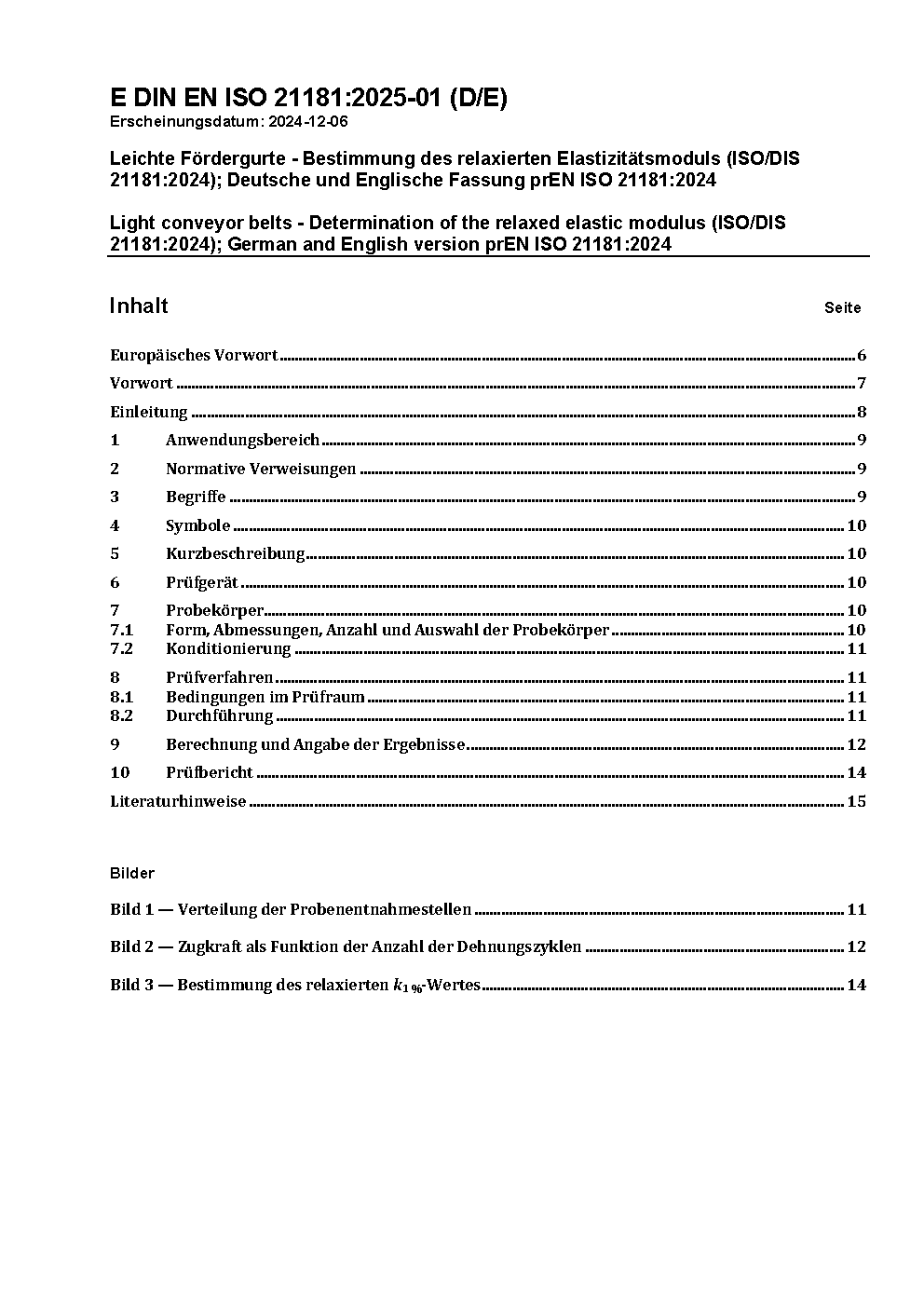Leichte Fördergurte - Bestimmung des relaxierten Elastizitätsmoduls (ISO 21181:2025); Deutsche Fassung EN ISO 21181:2025