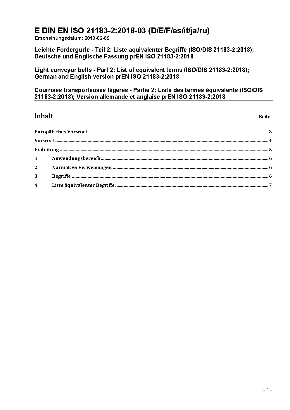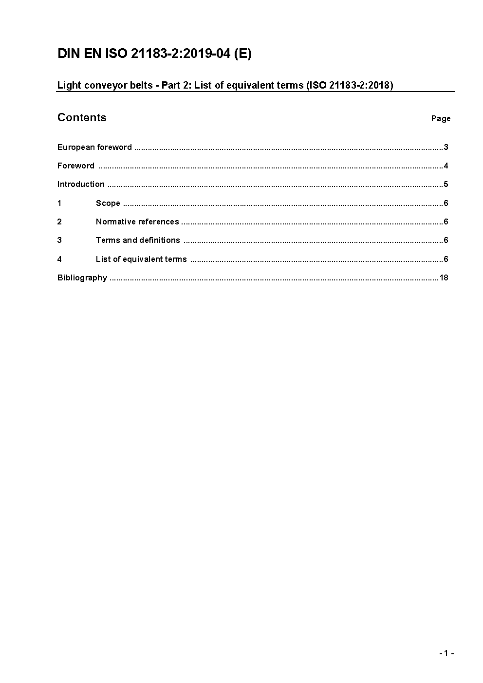 Leichte Fördergurte - Teil 2: Liste äquivalenter Begriffe (ISO 21183-2:2005); Deutsche Fassung EN ISO 21183-2:2006