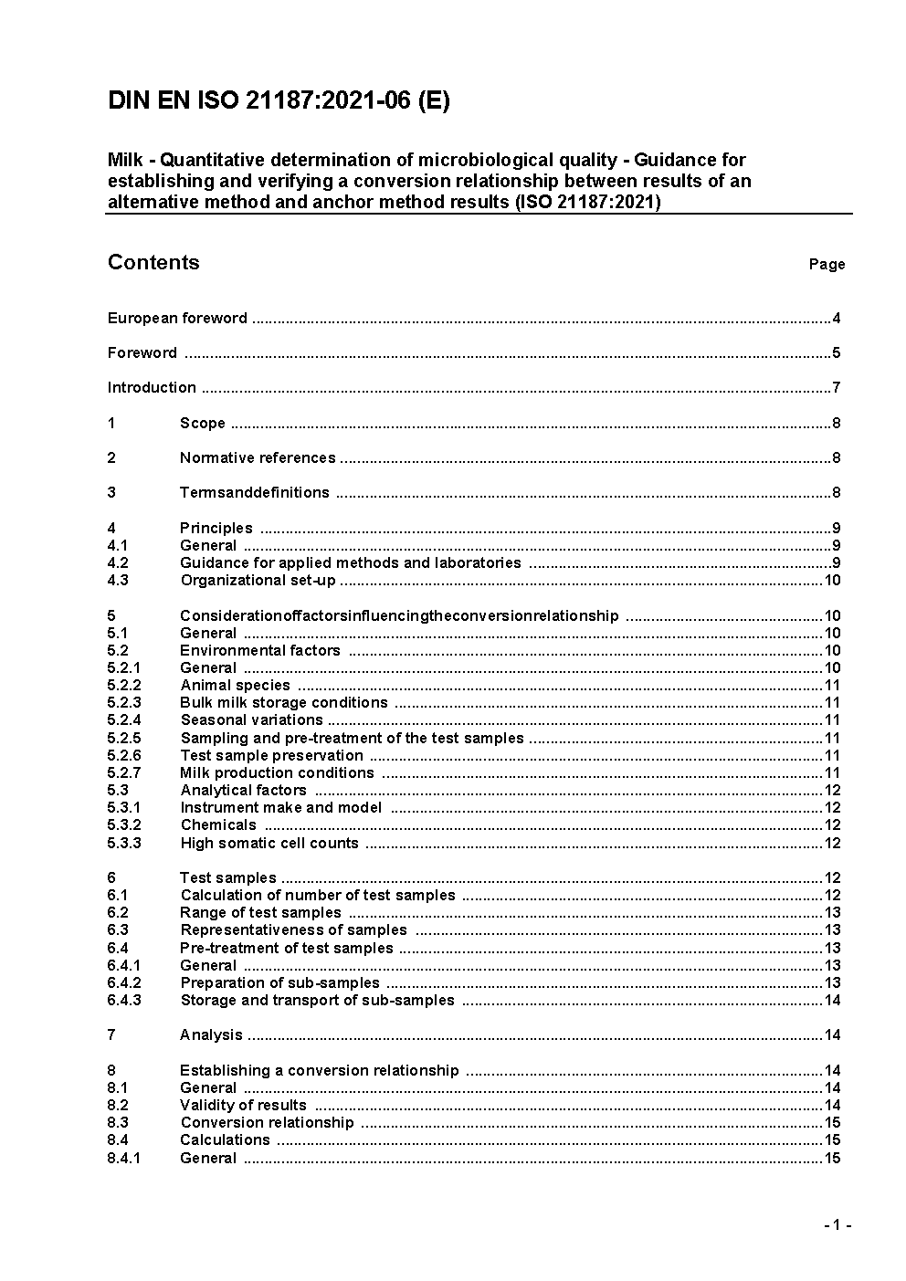 Milk - Quantitative determination of bacteriological quality - Guidance for establishing and verifying a conversion relationship between routine method results and anchor method results (ISO 21187:2004); German version EN ISO 21187:2005