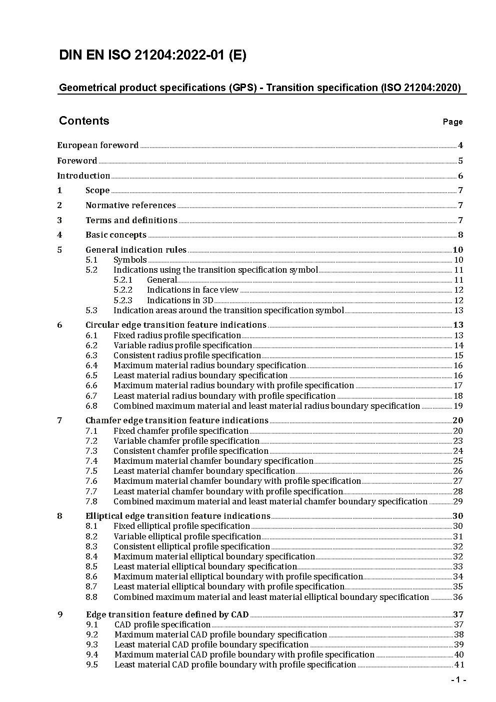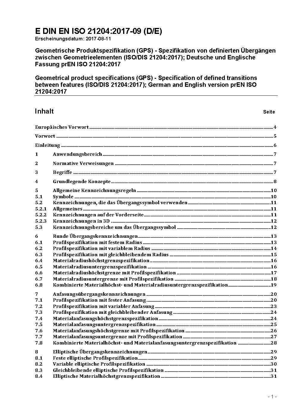 Geometrische Produktspezifikation (GPS) - Spezifikation von Übergängen (ISO 21204:2020); Deutsche Fassung EN ISO 21204:2020