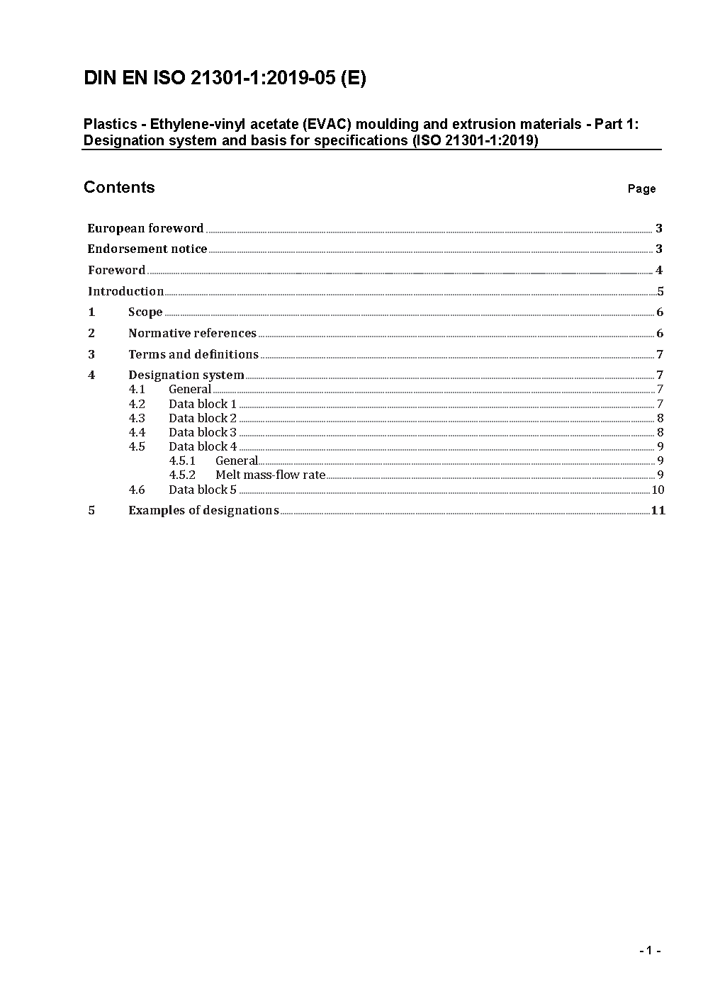 Plastics - Ethylene/vinyl acetate (E/VAC) moulding and extrusion materials - Part 1: Designation and specification (ISO/DIS 21301-1:2017); German and English version prEN ISO 21301-1:2017