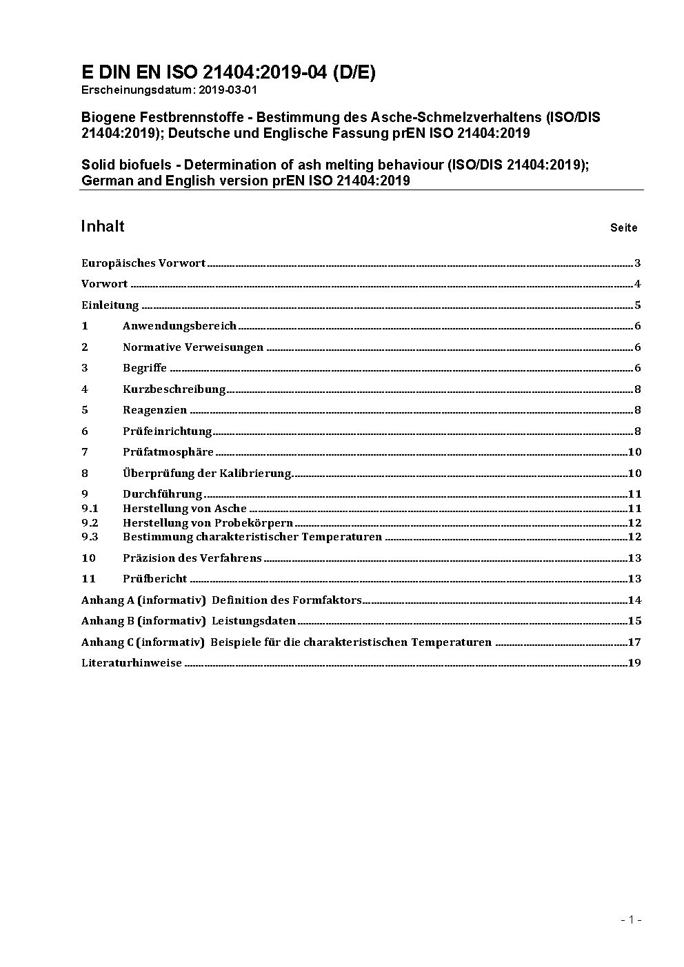 Biogene Festbrennstoffe - Bestimmung des Asche-Schmelzverhaltens (ISO 21404:2020); Deutsche Fassung EN ISO 21404:2020