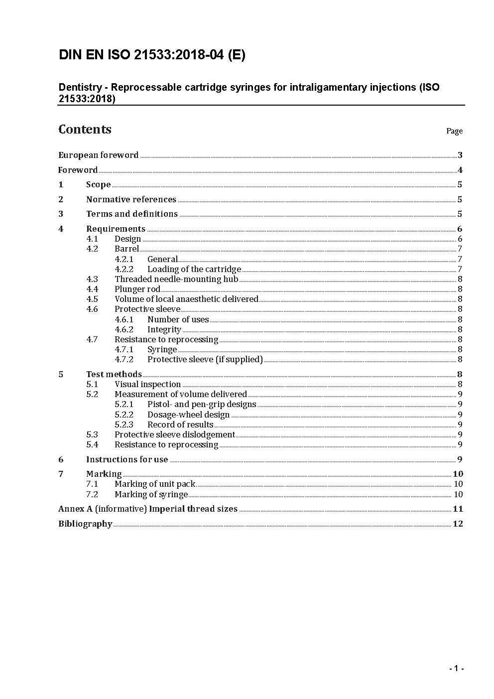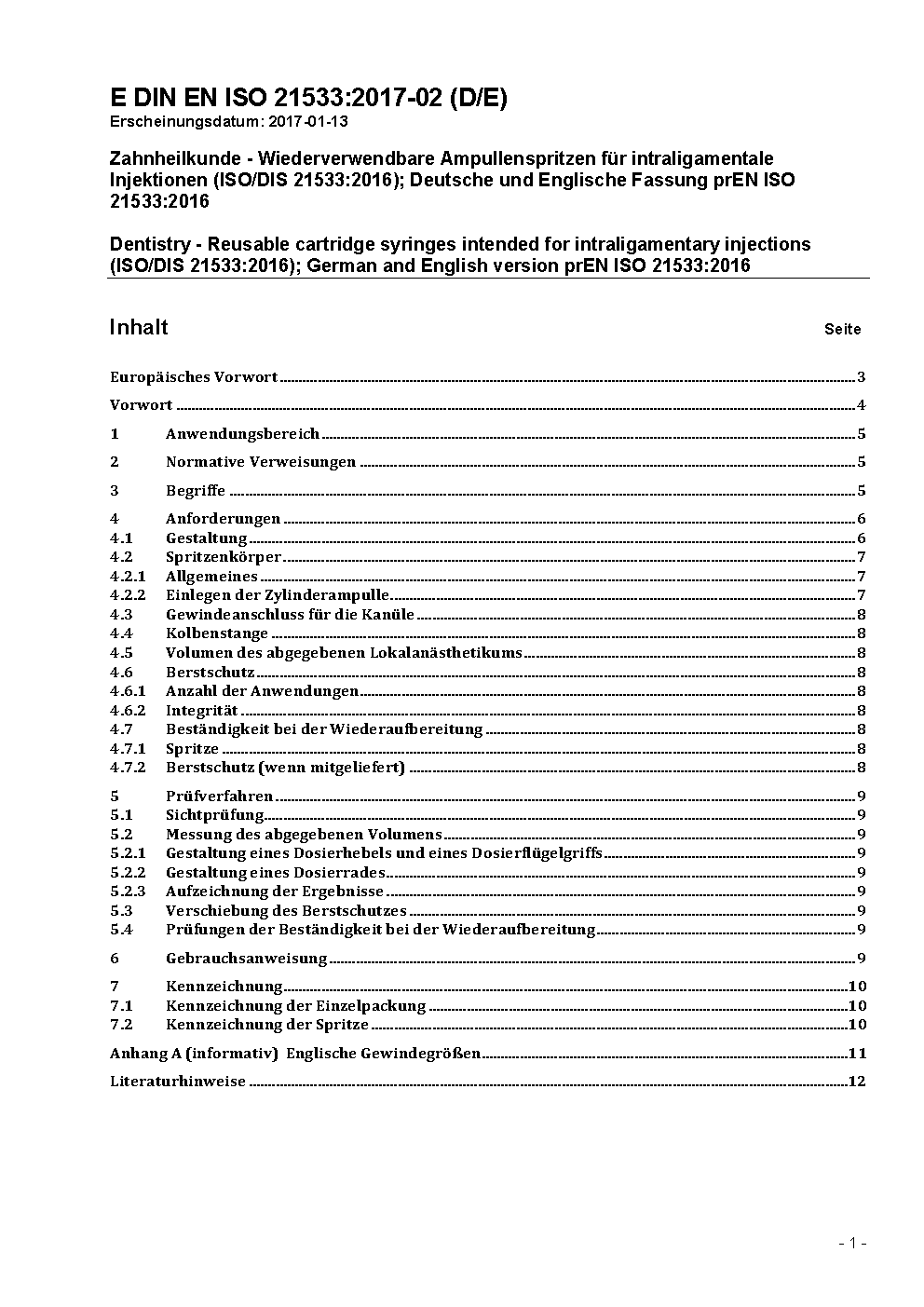 Zahnheilkunde - Wiederaufbereitbare Zylinderampullenspritzen für intraligamentale Injektionen (ISO 21533:2018); Deutsche Fassung EN ISO 21533:2018