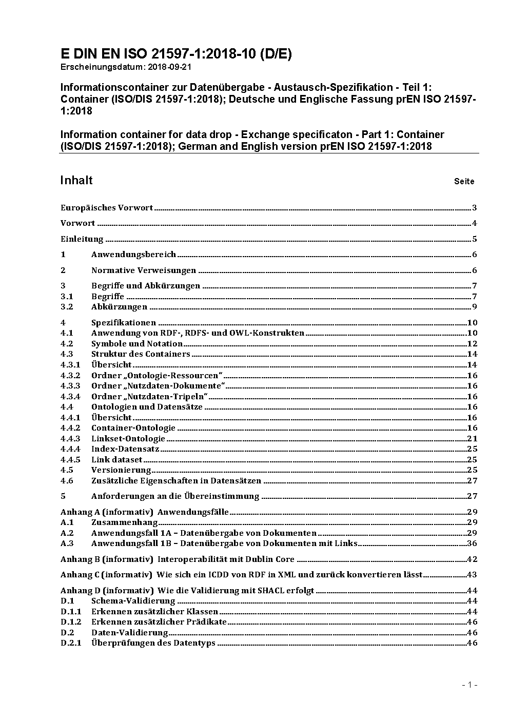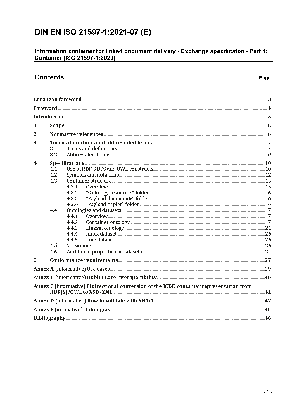 Information container for linked document delivery - Exchange specificaton - Part 1: Container (ISO 21597-1:2020); German version EN ISO 21597-1:2020