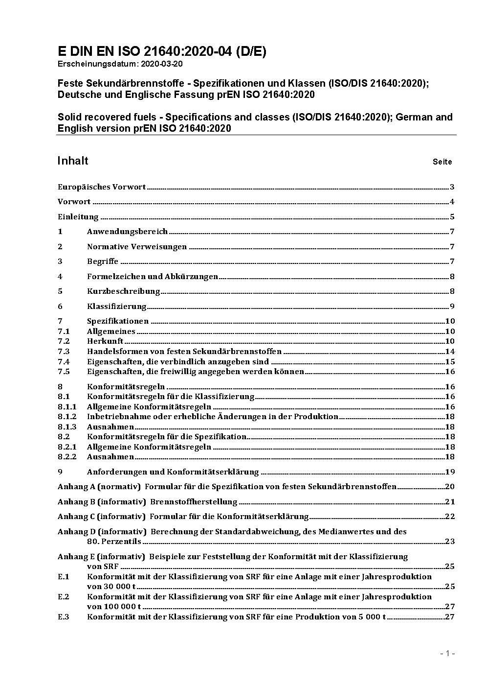 Solid recovered fuels - Specifications and classes (ISO 21640:2021); German version EN ISO 21640:2021