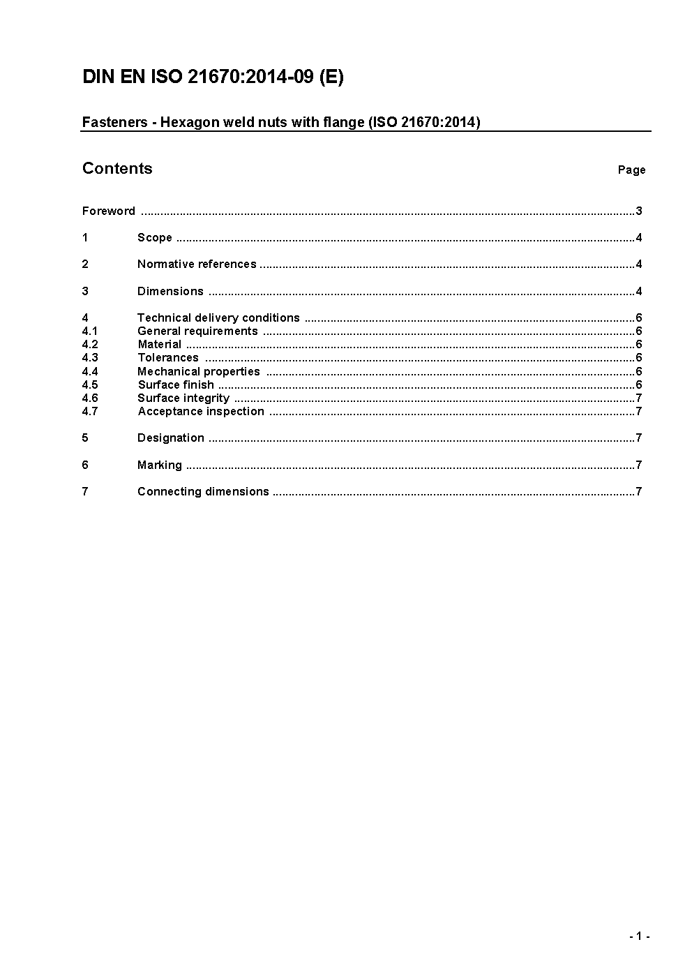 Fasteners - Hexagon weld nuts with flange (ISO/FDIS 21670:2013); German version FprEN ISO 21670