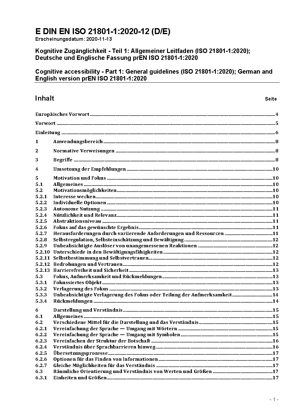 Cognitive accessibility - Part 1: General guidelines (ISO 21801-1:2020); German and English version prEN ISO 21801-1:2020