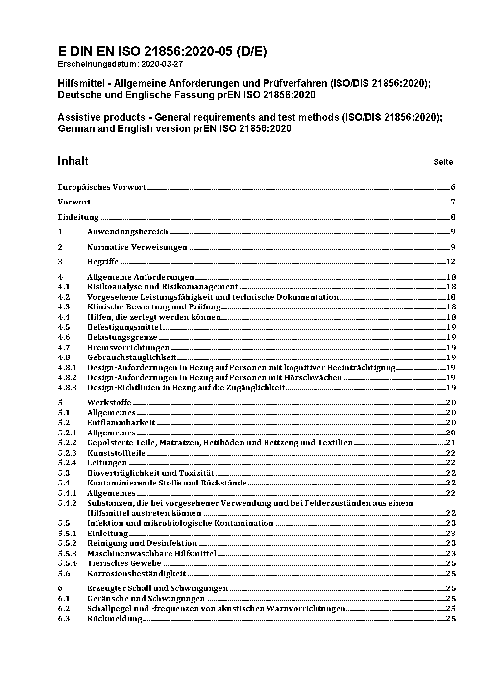 Hilfsmittel - Allgemeine Anforderungen und Prüfverfahren (ISO/DIS 21856:2020); Deutsche und Englische Fassung prEN ISO 21856:2020