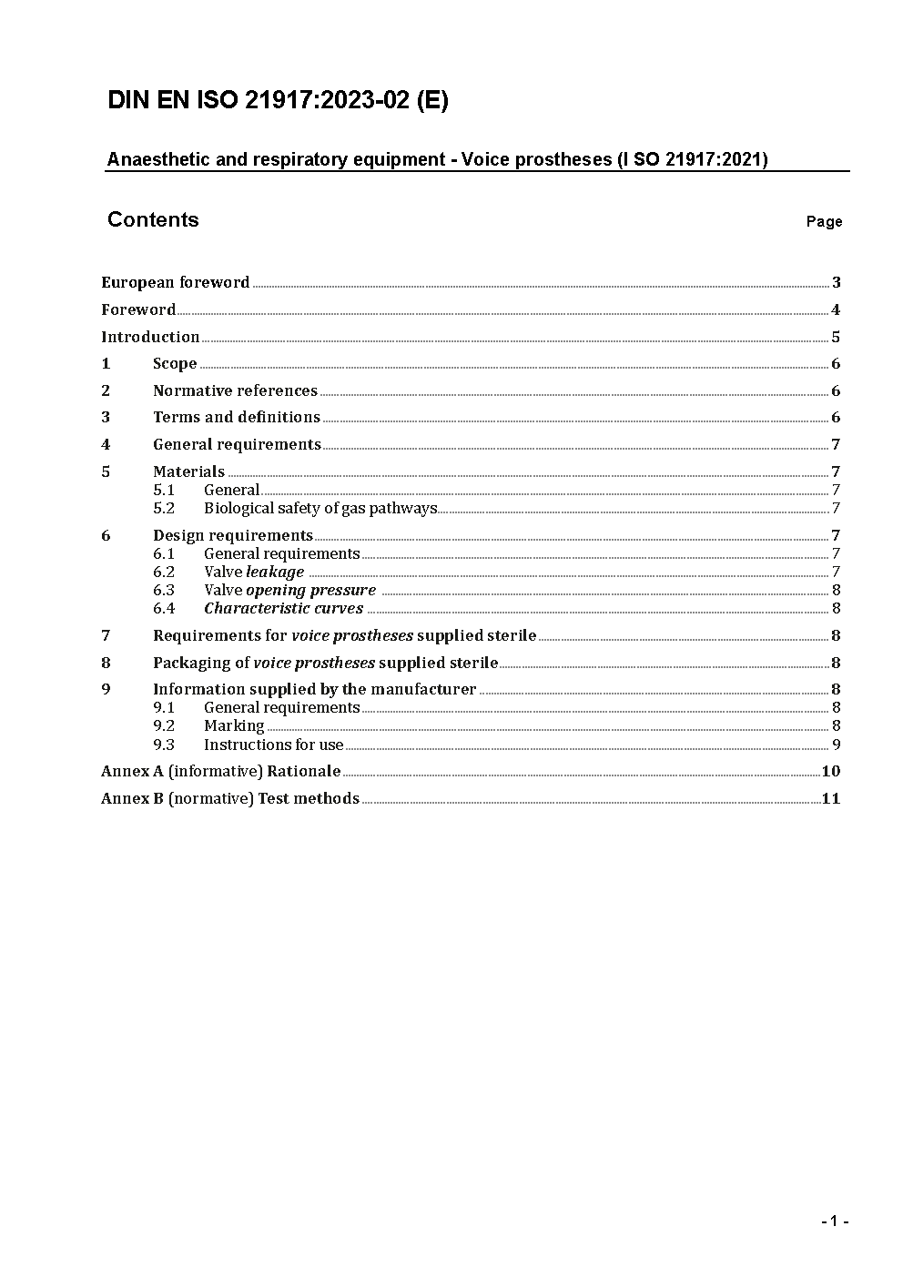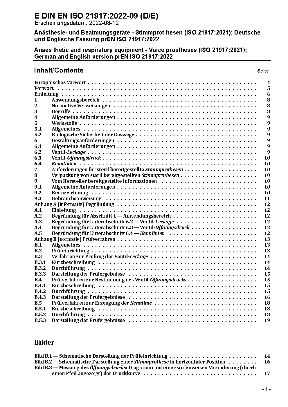 Anaesthetic and respiratory equipment - Voice prostheses (ISO 21917:2021); German and English version prEN ISO 21917:2022