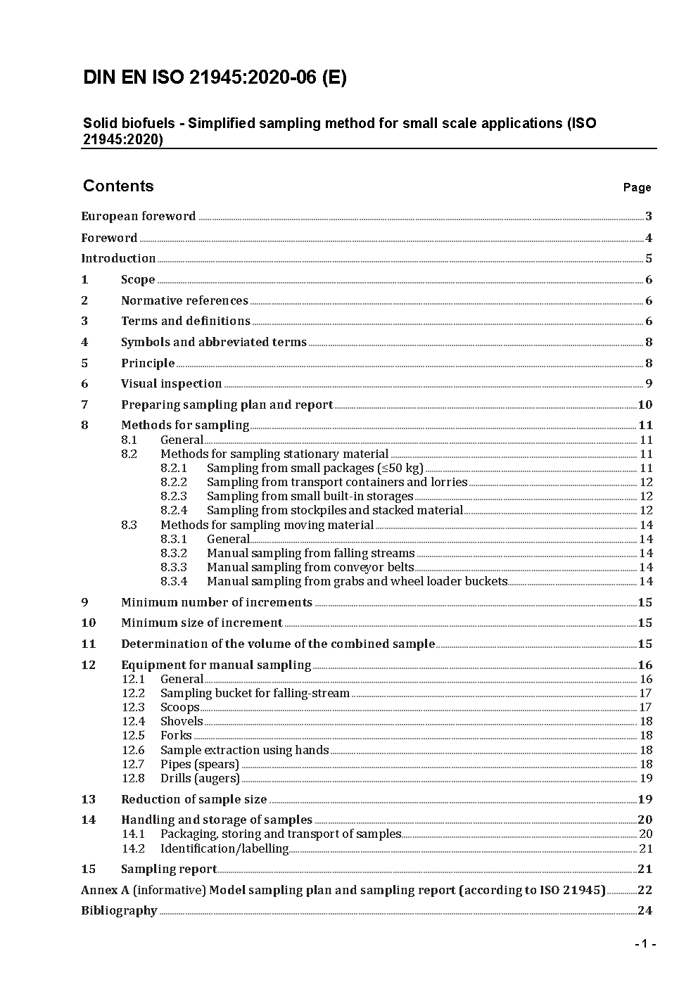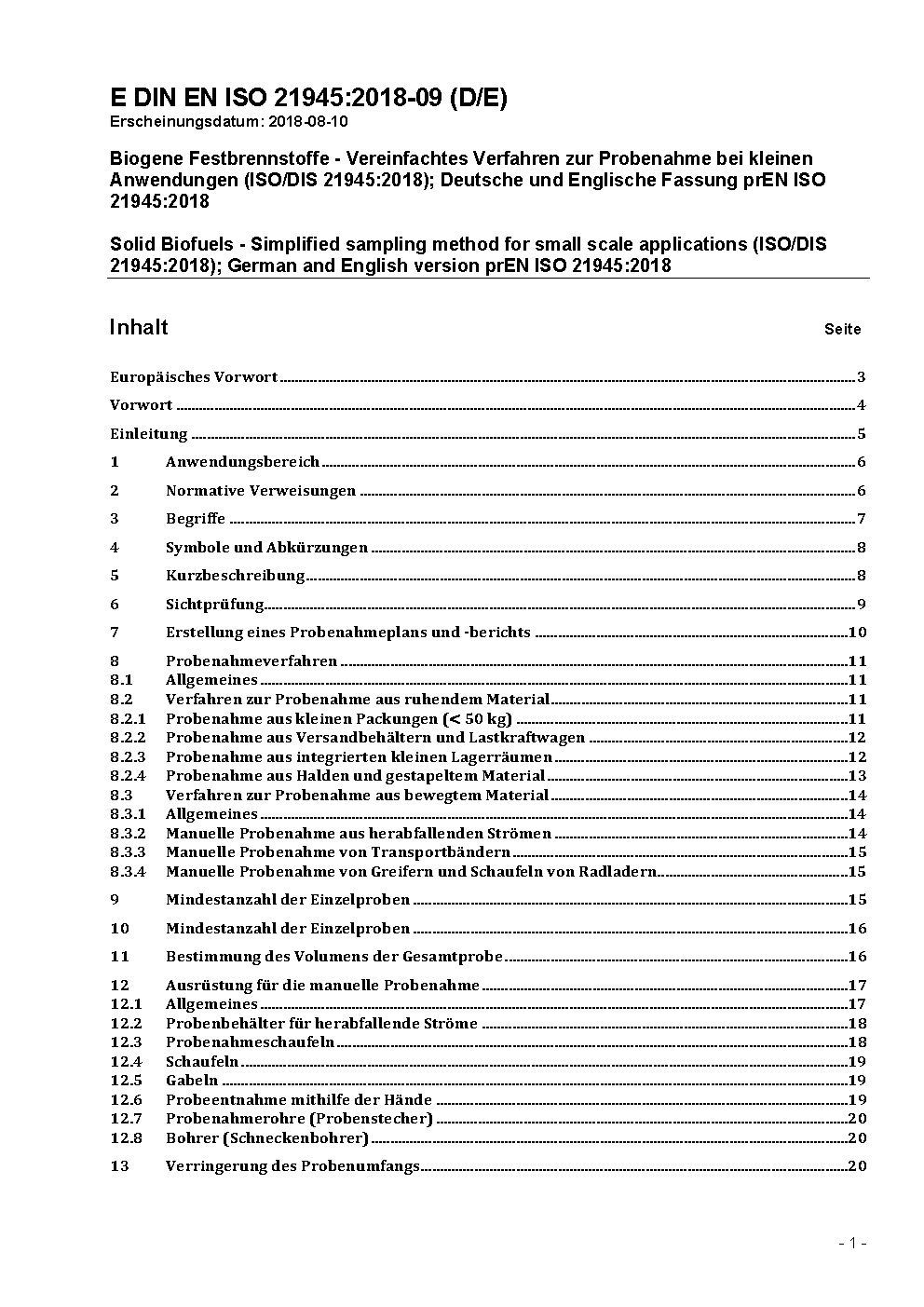 Solid Biofuels - Simplified sampling method for small scale applications (ISO/DIS 21945:2018); German and English version prEN ISO 21945:2018
