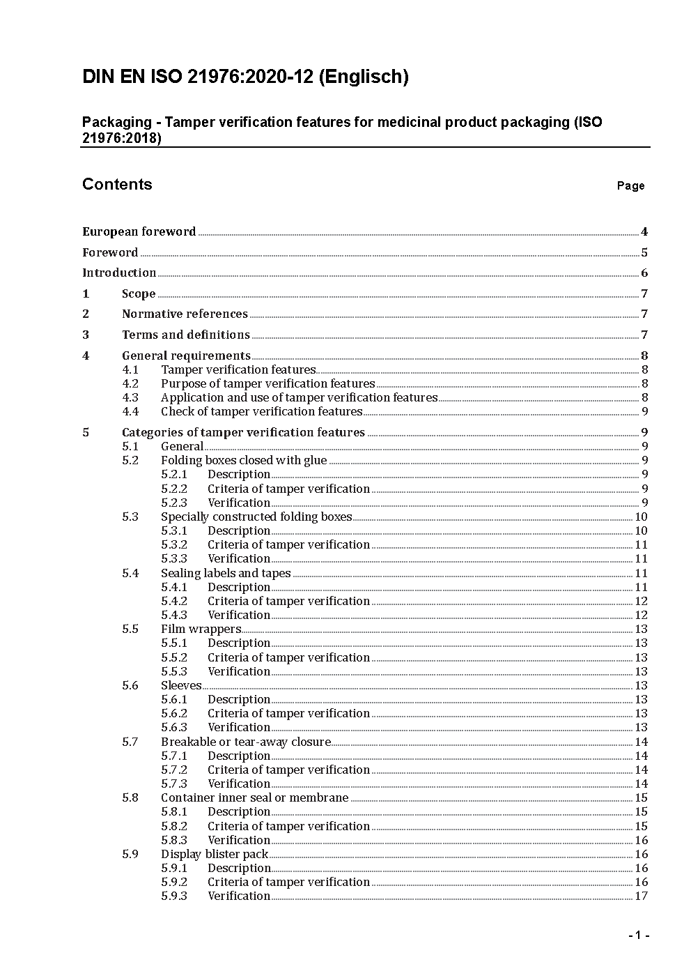 Packaging - Tamper verification features for medicinal product packaging (ISO 21976:2018); German and English version prEN ISO 21976:2020