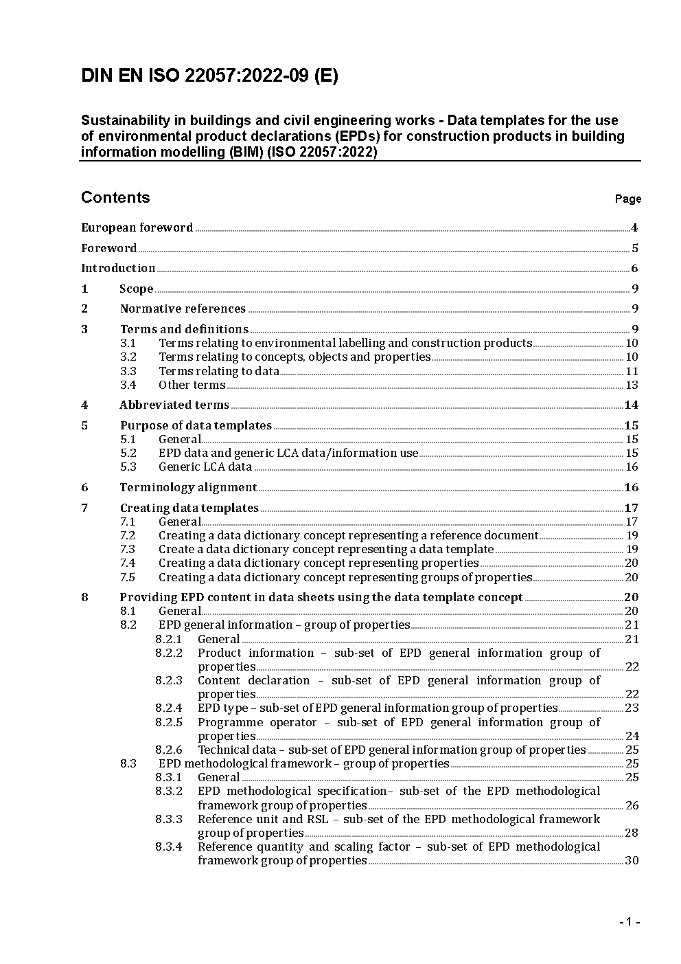 Sustainability in buildings and civil engineering works - Data templates for the use of EPDs for construction products in BIM (ISO/DIS 22057:2021); German and English version prEN ISO 22057:2021