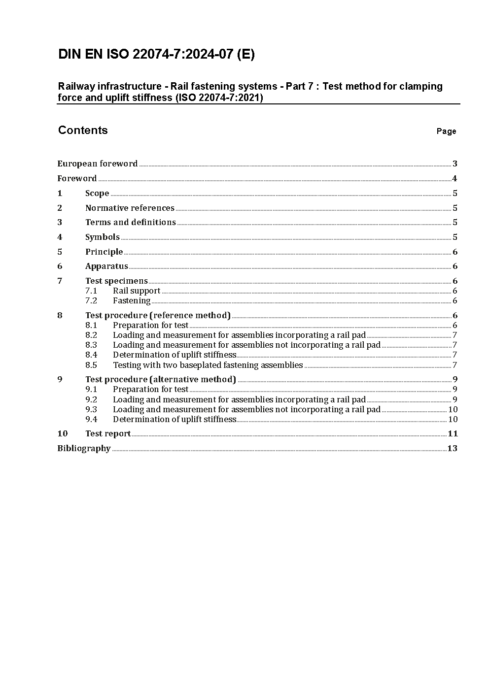 Railway infrastructure - Rail fastening systems - Part 7: Test method for clamping force and uplift stiffness (ISO 22074-7:2021); German version EN ISO 22074-7:2024