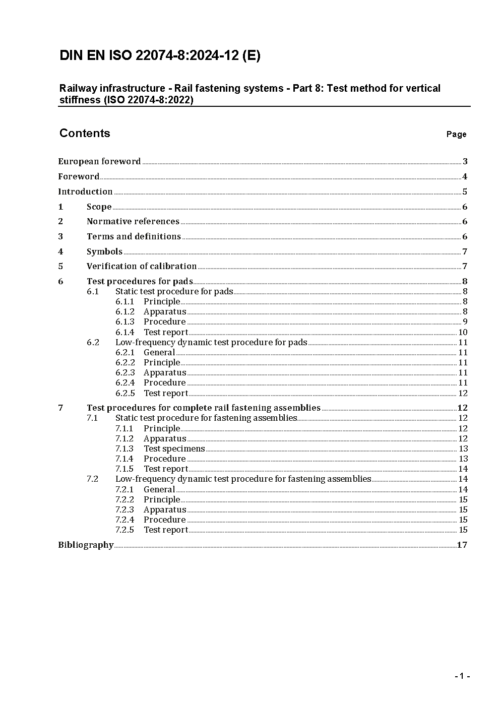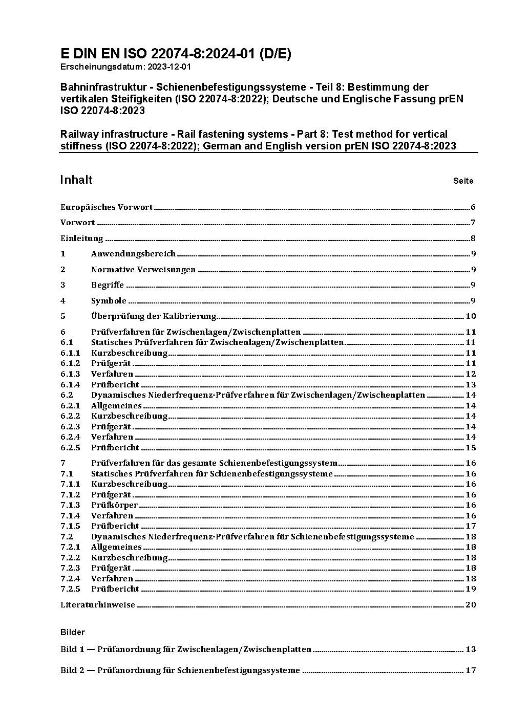 Bahninfrastruktur - Schienenbefestigungssysteme - Teil 8: Bestimmung der vertikalen Steifigkeiten (ISO 22074-8:2022); Deutsche Fassung EN ISO 22074-8:2024