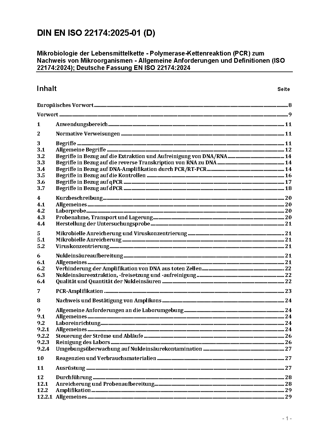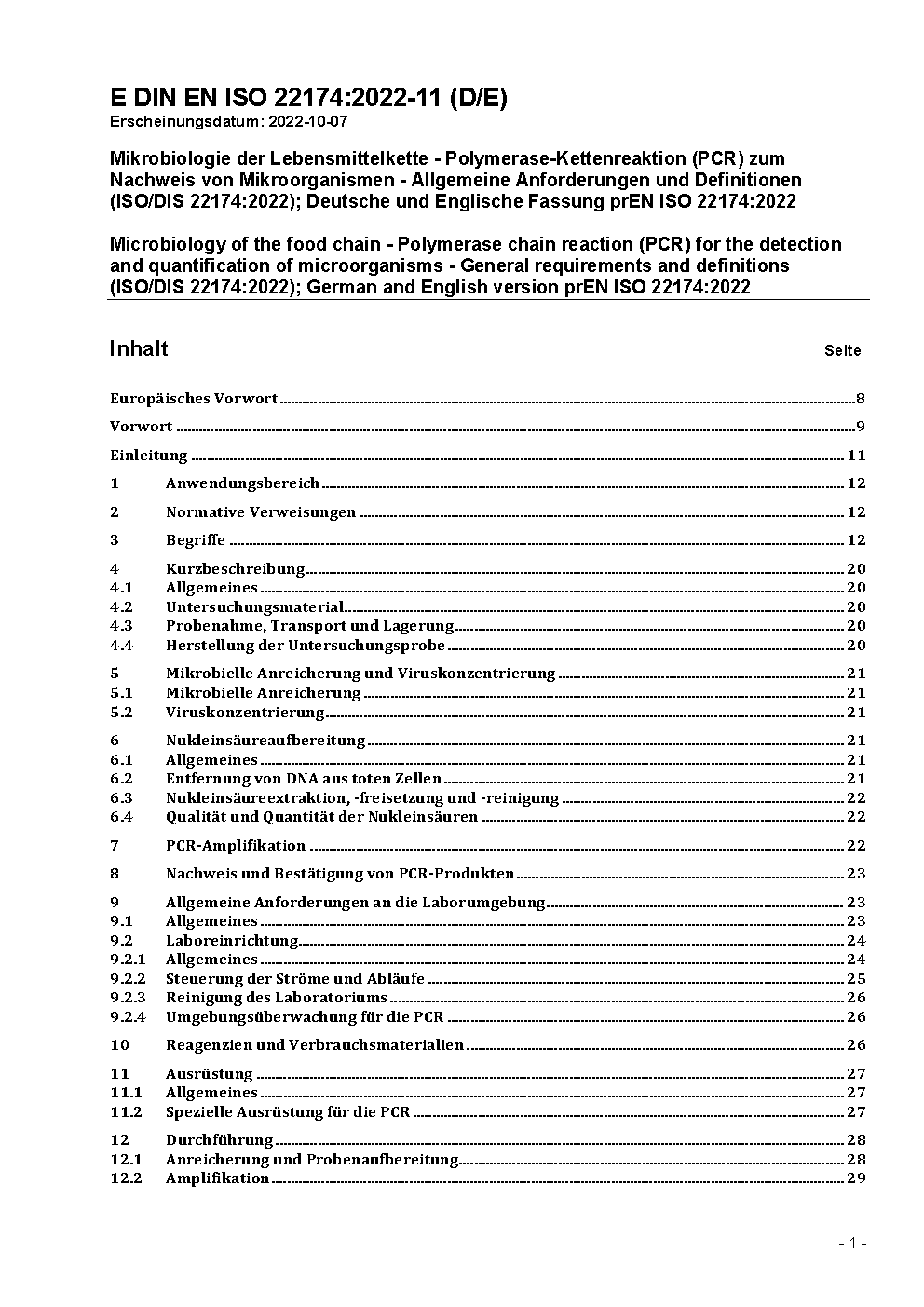 Microbiology of food and animal feeding stuffs - Polymerase chain reaction (PCR) for the detection of food-borne pathogens - General requirements and definitions (ISO 22174:2005); German version EN ISO 22174:2005