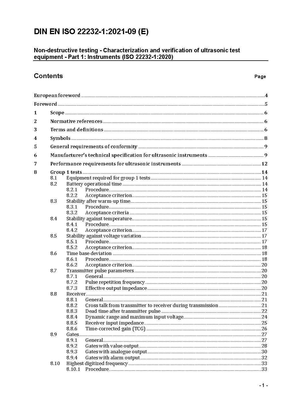 Non-destructive testing - Characterization and verification of ultrasonic examination equipment - Part 1: Instruments (ISO/DIS 22232-1:2018); German and English version prEN ISO 22232-1:2018