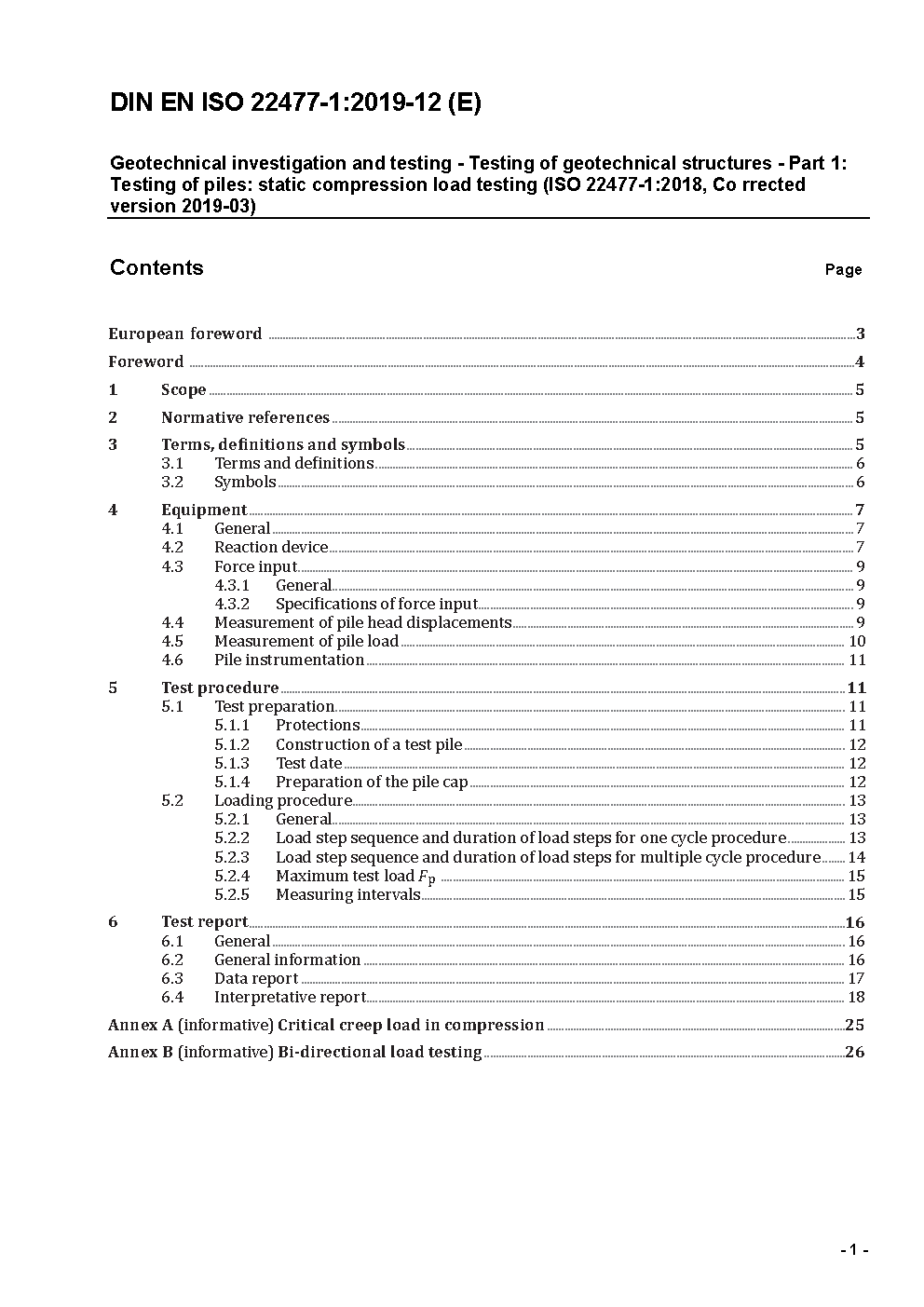 Geotechnische Erkundung und Untersuchung - Prüfung von geotechnischen Bauwerken und Bauwerksteilen - Teil 1: Pfahlprobenbelastungen durch statische axiale Belastungen (ISO/DIS 22477-1:2005); Deutsche Fassung prEN ISO 22477-1:2005
