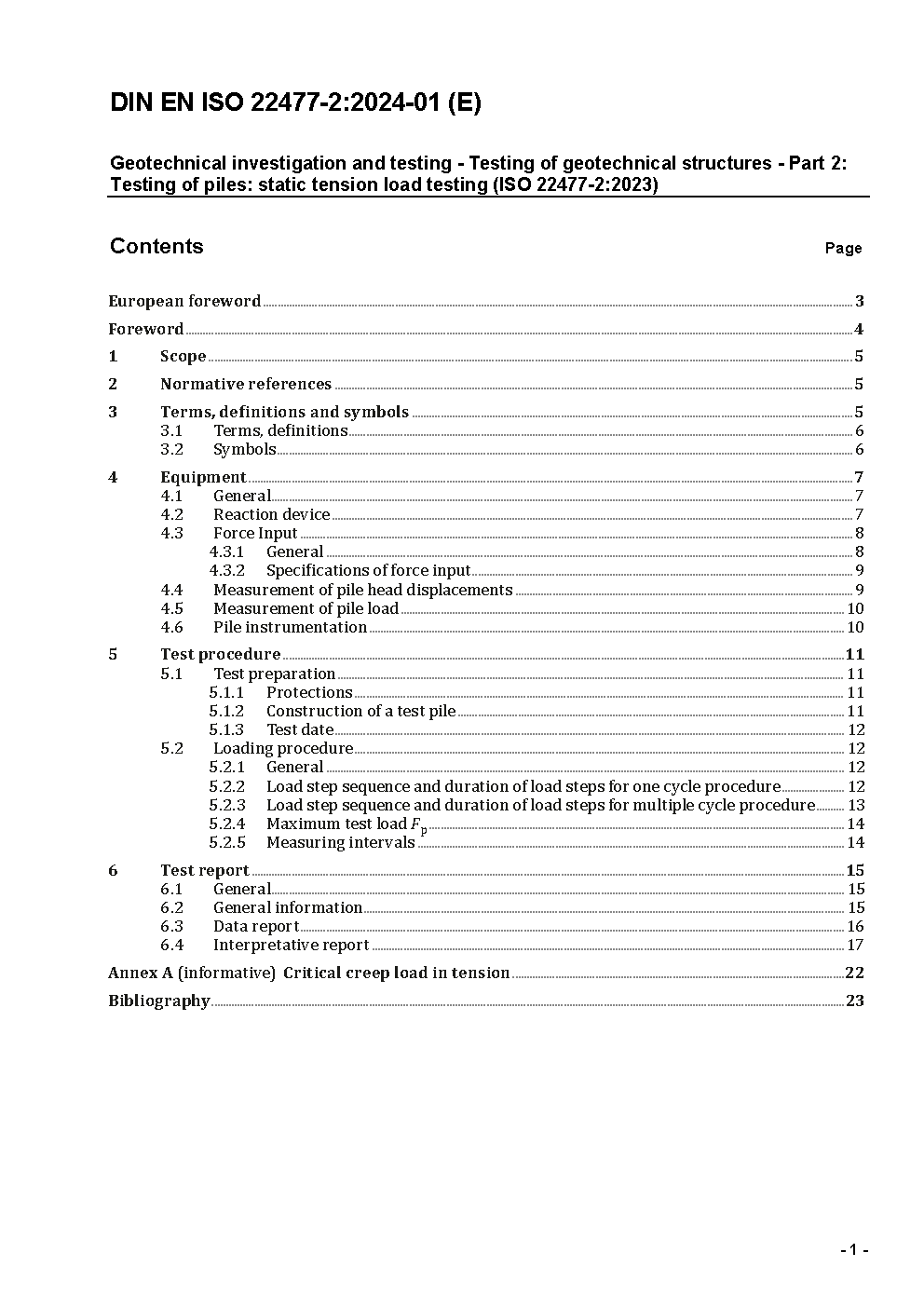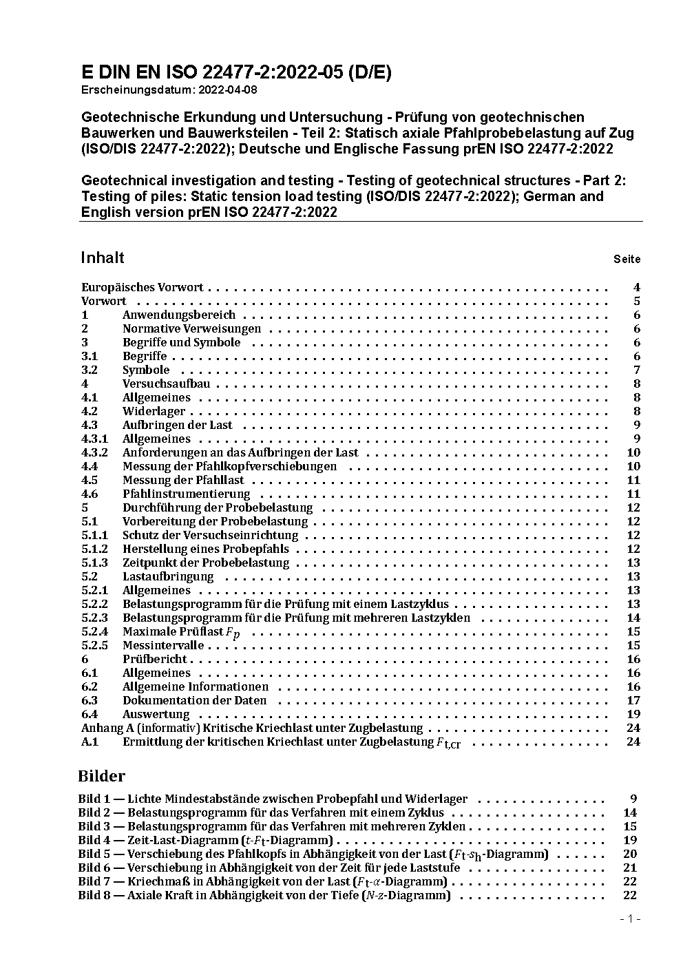 Geotechnische Erkundung und Untersuchung - Prüfung von geotechnischen Bauwerken und Bauwerksteilen - Teil 2: Statisch axiale Pfahlprobebelastung auf Zug (ISO 22477-2:2023); Deutsche Fassung EN ISO 22477-2:2023